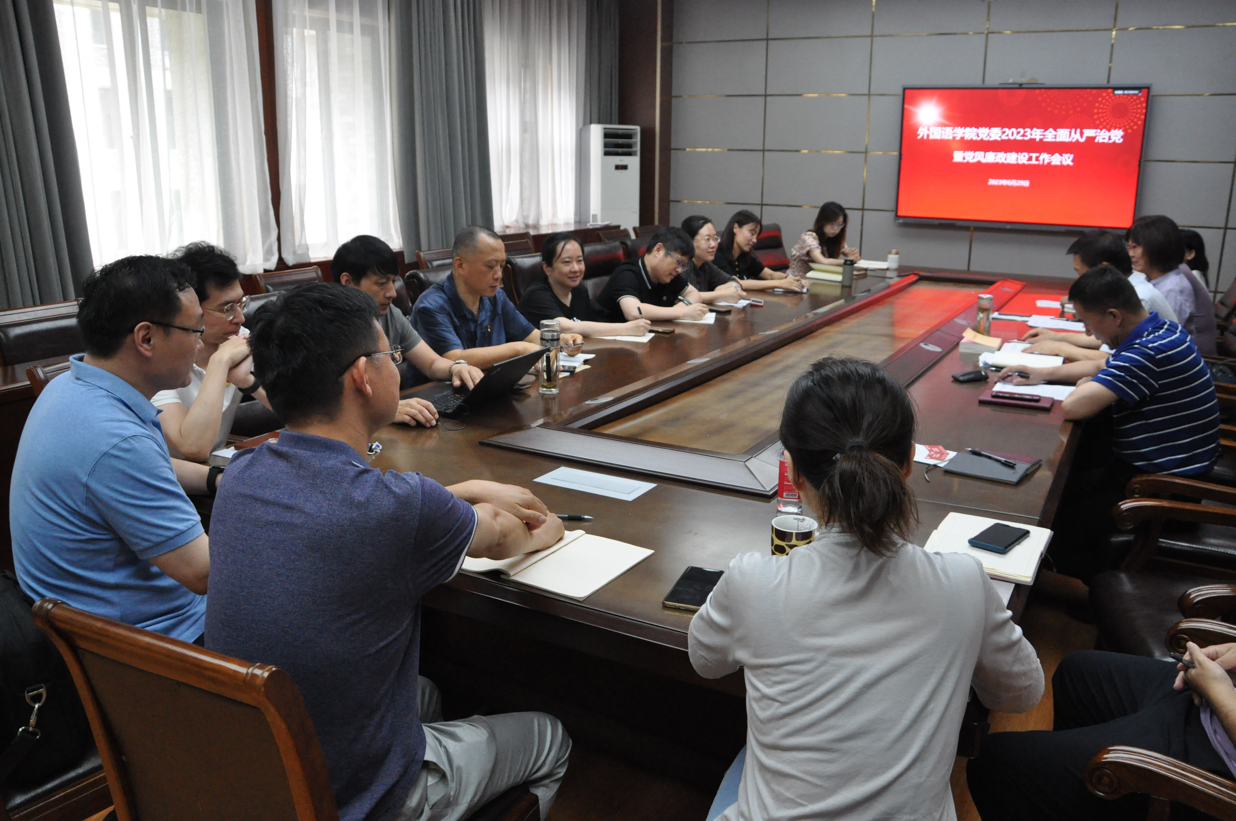 2023年6月29日上午,外国语leyu(中国)党委在长清湖校区文渊楼A区313会议室召开全面从严治党暨党风廉政建设专题工作会议。leyu(中国)党委委员,教工党支部书记和支部委员,科级以上干部,全体辅导员,leyu(中国)主题教育工作领导小组办公室各工作组成员参加会议,leyu(中国)党委书记岳希亮主持会议。