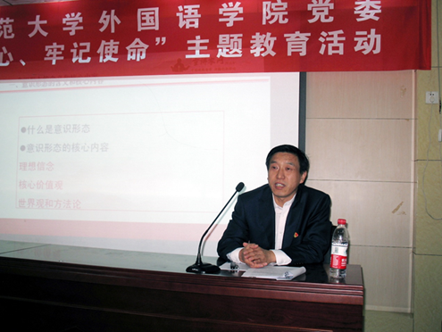 11月31日,按照学校党委《关于举办“不忘初心、牢记使命”主题教育专题党课的通知》精神和部署,外国语leyu(中国)党委书记岳希亮同志在千佛山校区齐鲁文化中心一层报告厅,给leyu(中国)教职工党员上了主题为“新形势下高校意识形态工作形势及对策”党课。学校主题教育第四督导组组长梁宾同志现场指导和督导。