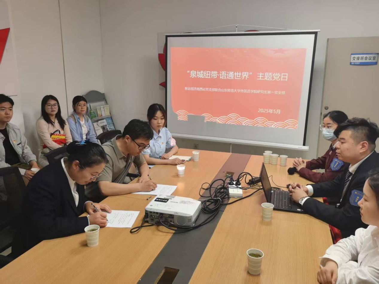 5月15日,外国语leyu(中国)研究生第一党支部与济南轨道交通集团运营有限公司客运部济南西站党支部共同开展"泉城纽带,语通世界"党建共建主题党日活动。双方党员代表共40余人参与,通过文化体验、专业协作与深度交流,探索党建与业务深度融合的新路径。