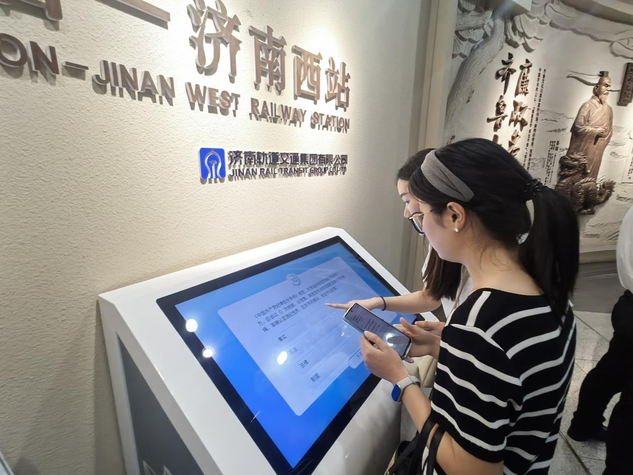 活动中,双方党员代表走进济南地铁大学城站“书香车站”文化空间,实地探访“传统文化+经纬丹青”特色场景。陶制活字印刷墙生动再现传统技艺匠心,李清照词作水墨连廊展现诗画泉城底蕴,“图书漂流,书香传递”的创意涂鸦与“诗配画”展陈区共同构建出行阅读新生态。外国语leyu(中国)研究生党员立足专业特长,现场优化地铁标识英文译写规范,以“党建+业务”实践推动服务质量提升,实现文化浸润与基层服务的双向赋能。