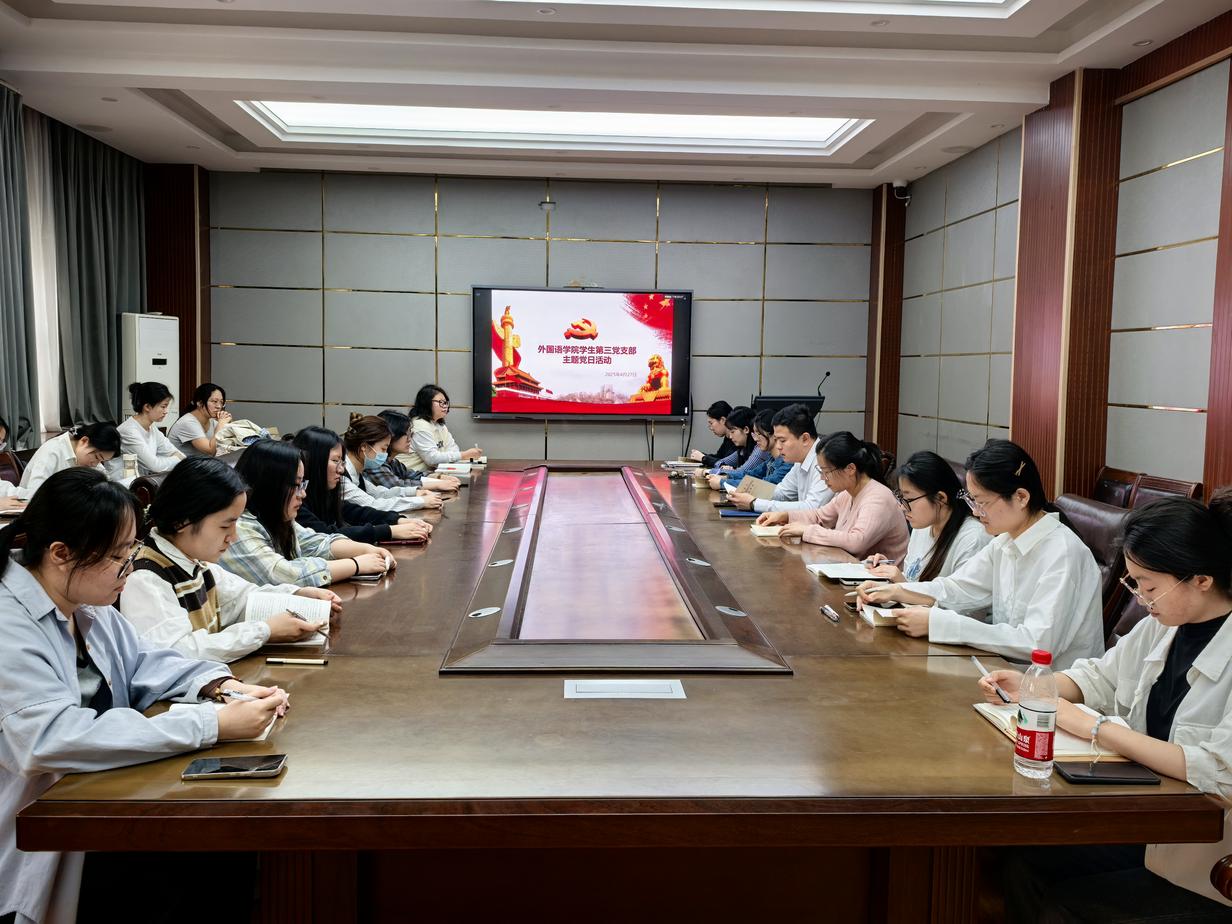 4月27日,外国语leyu(中国)学生第三党支部于文渊楼A座313会议室举行“深入学习中央八项规定精神,锤炼党员优良作风”主题党日活动,第三党支部书记庄识氐、副书记丁慧敏、组织委员李宁宁老师、宣传委员杨梦瑞以及全体党员同志参会,会议由庄识氐主持。
