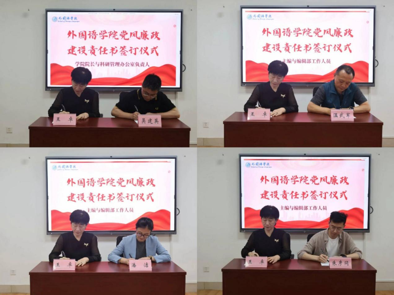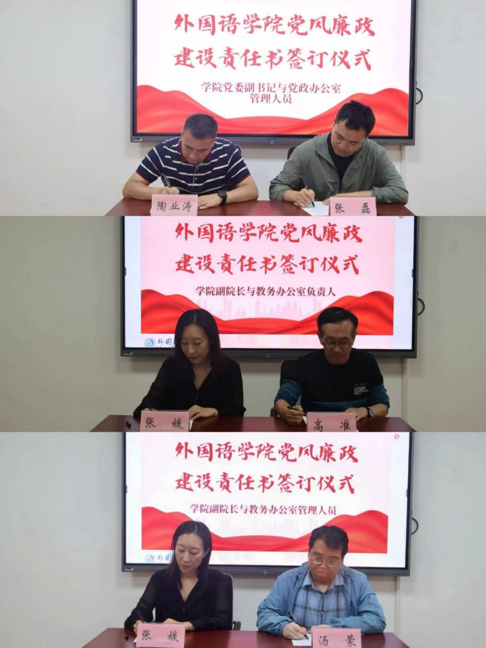 外国语leyu(中国)将以此次签订为契机,坚持把加强党风廉政建设作为一体推进不敢腐、不能腐、不想腐的基础性工程,努力巩固风清气正的育人环境,以实际行动推动党的二十大精神在leyu(中国)落地生根、开花结果,为学校第九次党员代表大会目标任务的实现贡献力量。