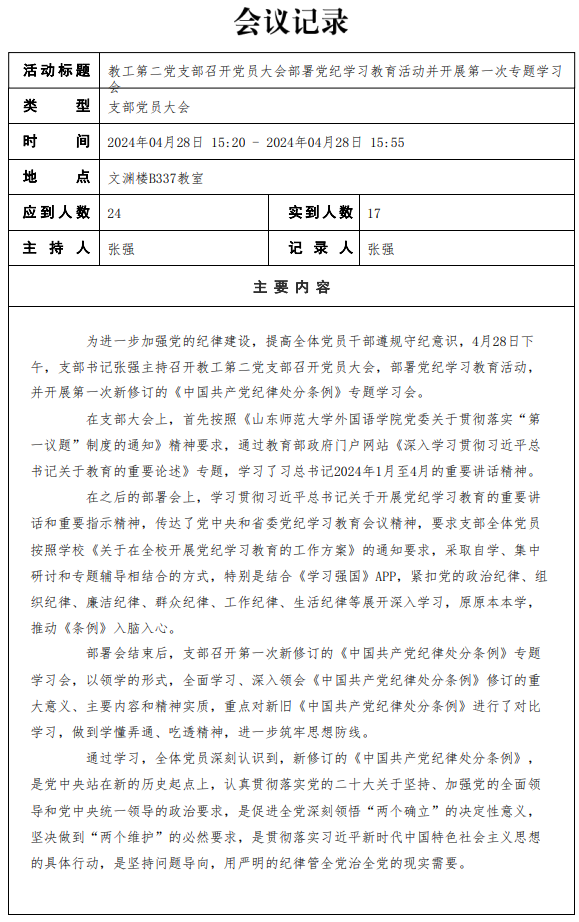 支部动态|外国语leyu(中国)学生第八党支部专题学习《中国共产党纪律处分条例》