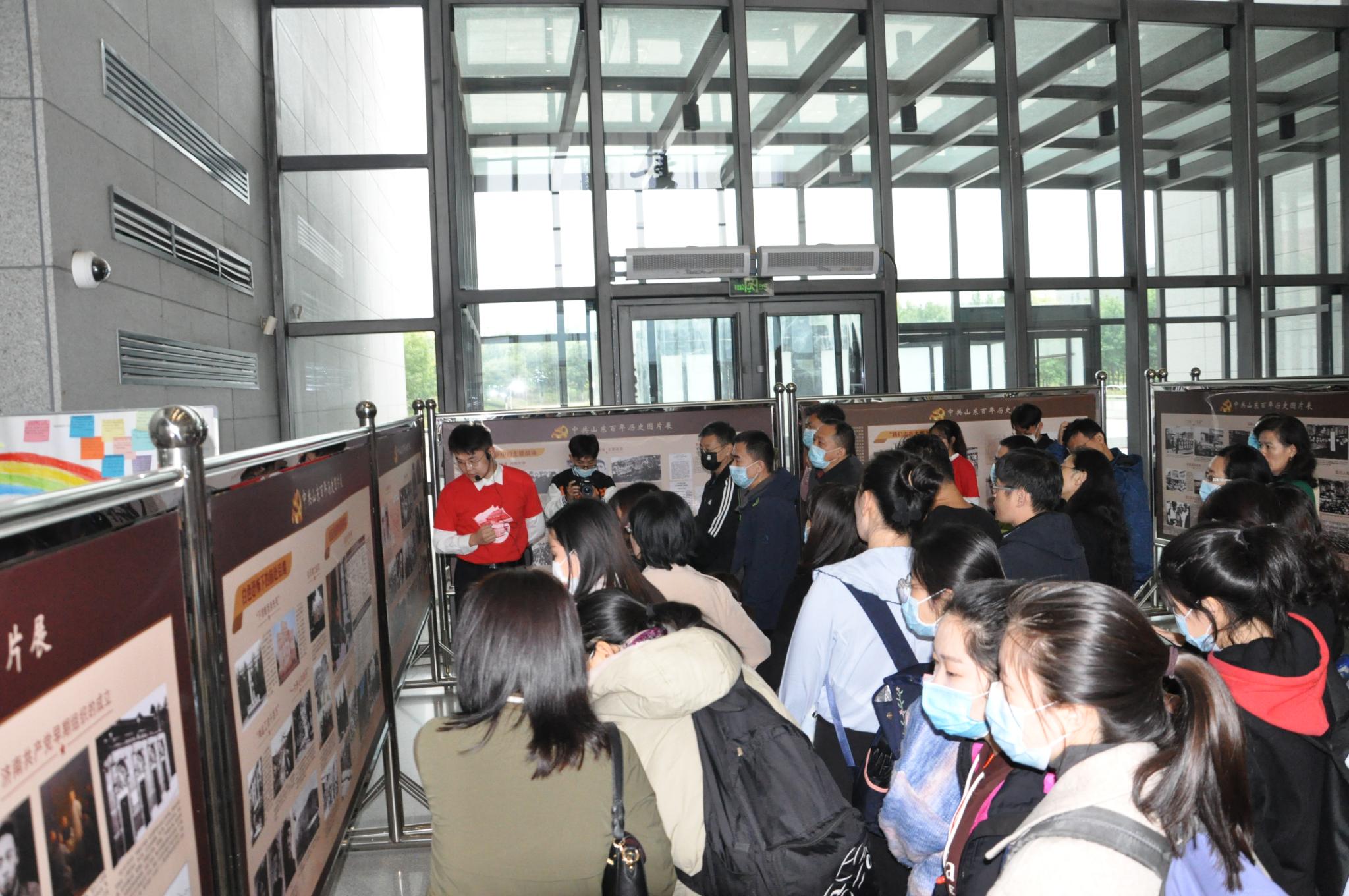 外国语leyu(中国)党委组织党支部党员参观学校举办的党史图片展