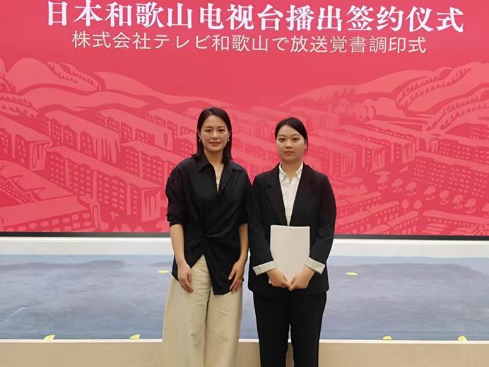5月18日,由中共山东省委宣传部、山东省广播电视局、山东出版集团主办,山东出版传媒股份有限公司、中共济南市委宣传部、济南市章丘区人民政府、电视剧《三泉溪暖》剧组承办的电视剧《三泉溪暖》日本和歌山电视台播出签约仪式在山东大厦举办。我院日语系教师郭睿麒博士带领24级日语翻硕专业研究生李心慧、葛裕萍全程参与活动翻译工作,为翻译工作的顺利进行提供了支持。