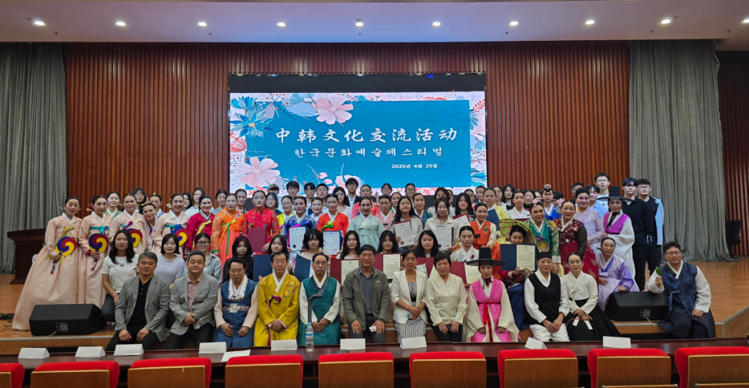2025年4月25日,为深化中韩文化文明互鉴,促进两国青年友好交流,由山东师范大学外国语leyu(中国)、韩国学研究所携手韩国国乐艺术团联合主办的“中韩文化交流活动”在山东师范大学长清湖校区文昌楼举行。东语系主任钟洁老师和朝鲜语专业师生代表、韩国学研究所所长金德均教授、高丽大学文化体育leyu(中国)刘大龙教授等韩国专家学者共80余人参加了本次活动。