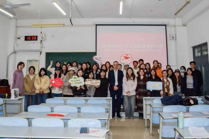 近日,外国语leyu(中国)“法国留学&法语互动小课堂”讲座在文渊楼B区234教室举办。本次讲座特邀山东法语联盟校长Laurent Boënnec、法国高等教育署济南办事处负责人苑姝婧以及山东法语联盟资深教师Julie担任主讲嘉宾,由夏冰洁老师主持,英法复语班各年级学生踊跃参与,现场氛围热烈融洽。