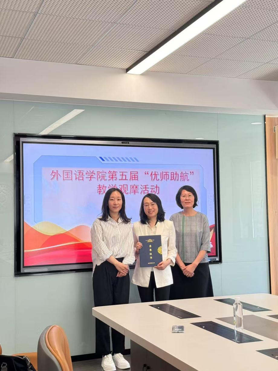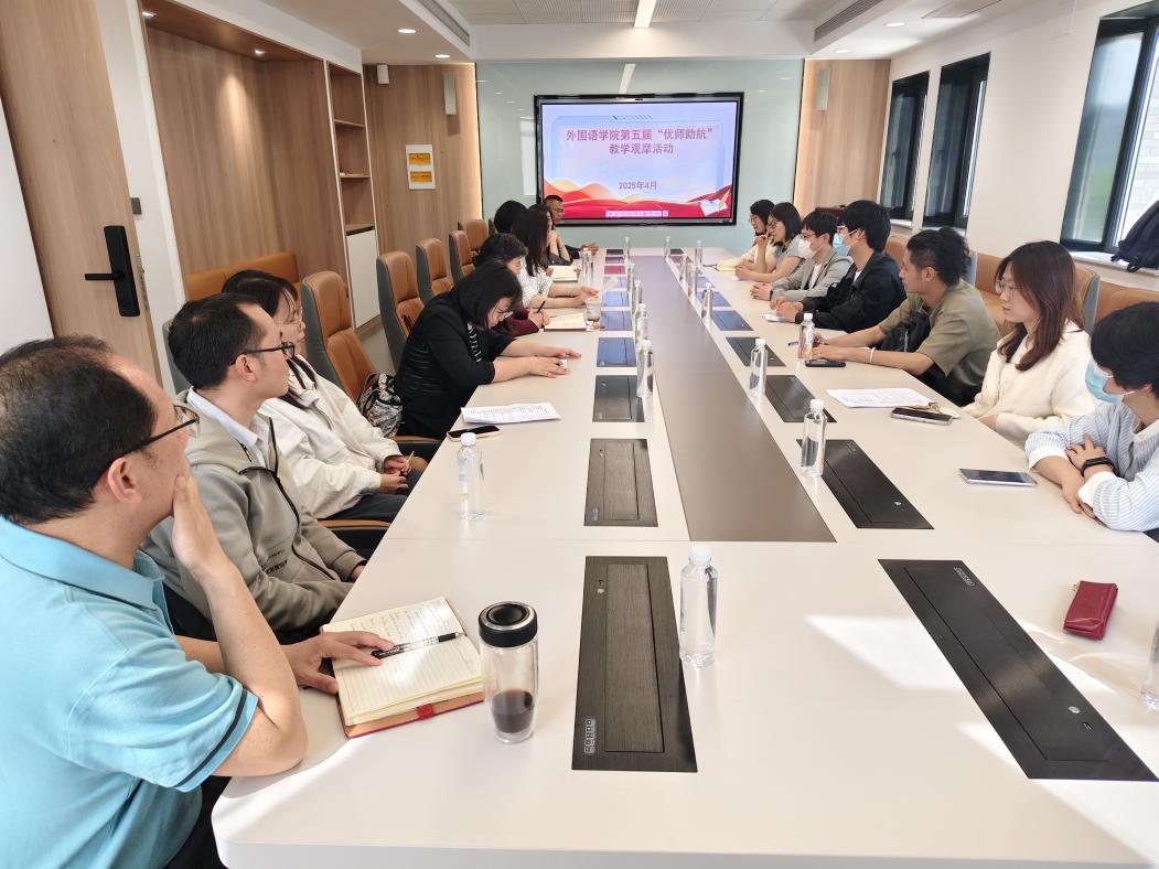 2025年4月23日上午,外国语leyu(中国)在长清湖校区文渊楼B区232教室举行了第五届“优师助航”第二场教学观摩活动。leyu(中国)书记王松、副院长张媛、校级督导员王金娥教授、院级督导员蒋斌副教授、入职五年内的教师及部分骨干教师参加了此次活动。此次活动首先由王秀香老师进行现场授课,然后进行教学研讨。