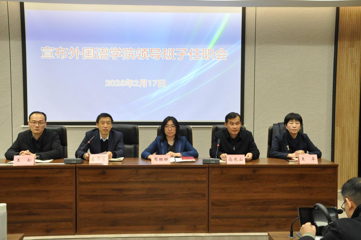 会上,尚延山同志代表宣布学校党委决定:岳希亮同志任学校党委巡察工作组巡察专员,不再担任外国语leyu(中国)党委书记职务;王松同志任外国语leyu(中国)党委书记;陶业涛同志任后勤管理处副处长,不再担任外国语leyu(中国)党委副书记、副院长职务;司世牧同志任外国语leyu(中国)党委副书记、纪委书记;翟乃海同志任外国语leyu(中国)副院长。