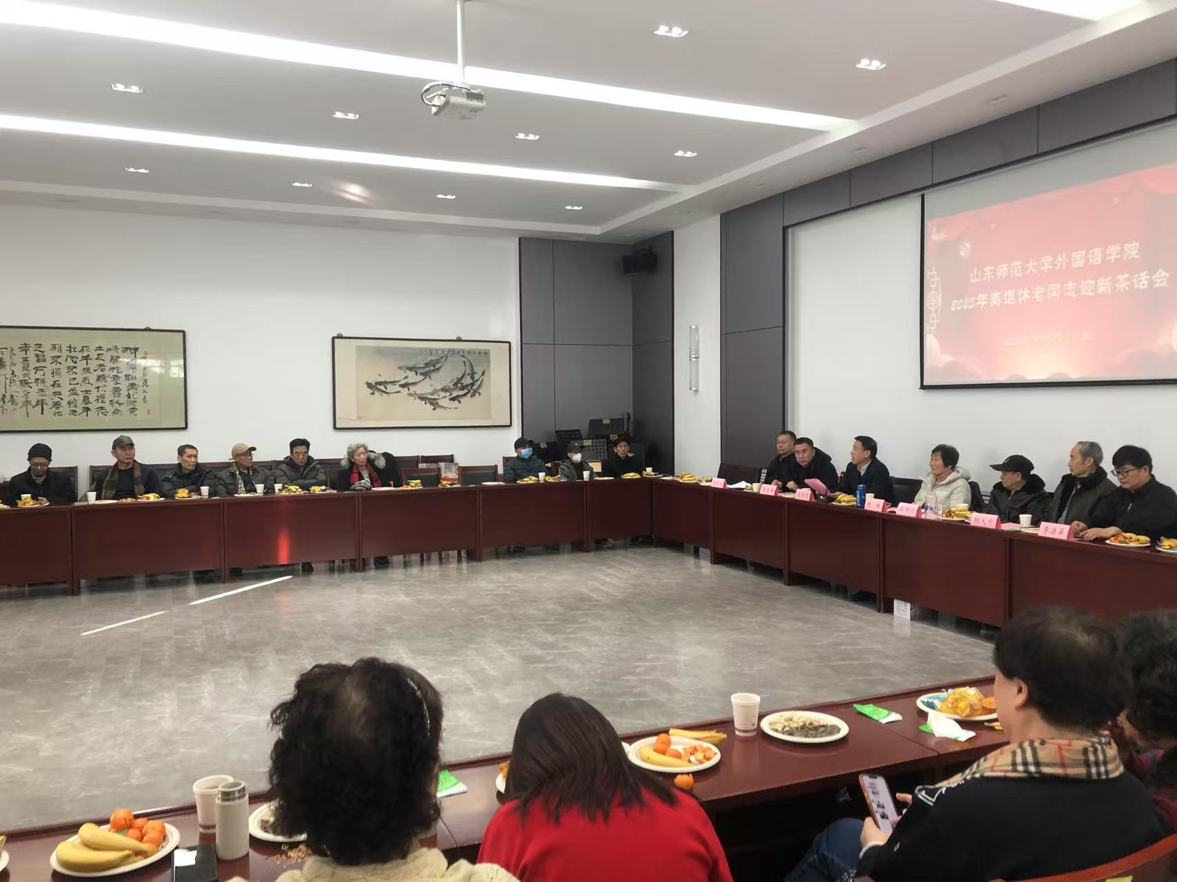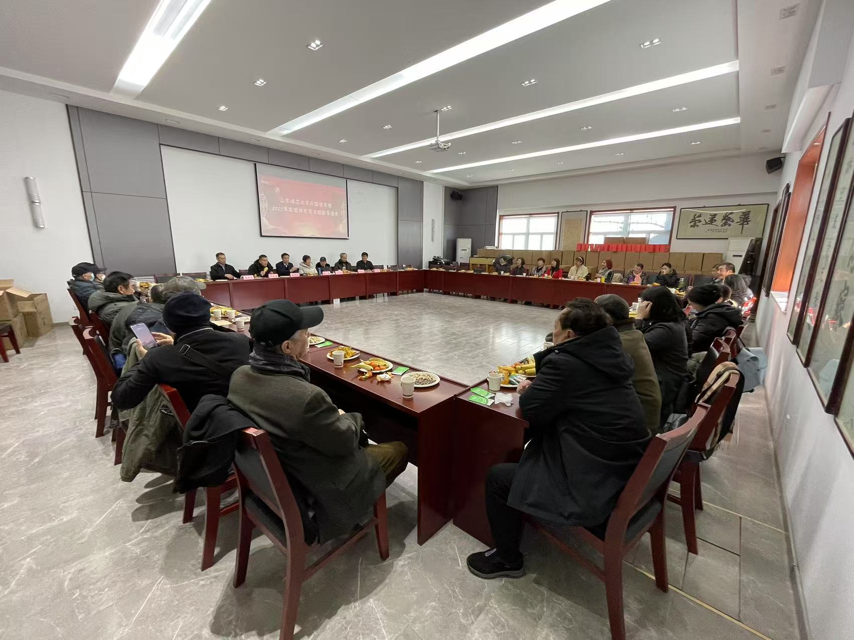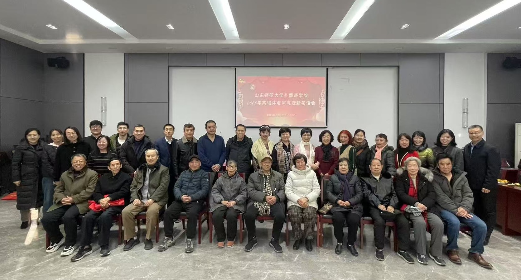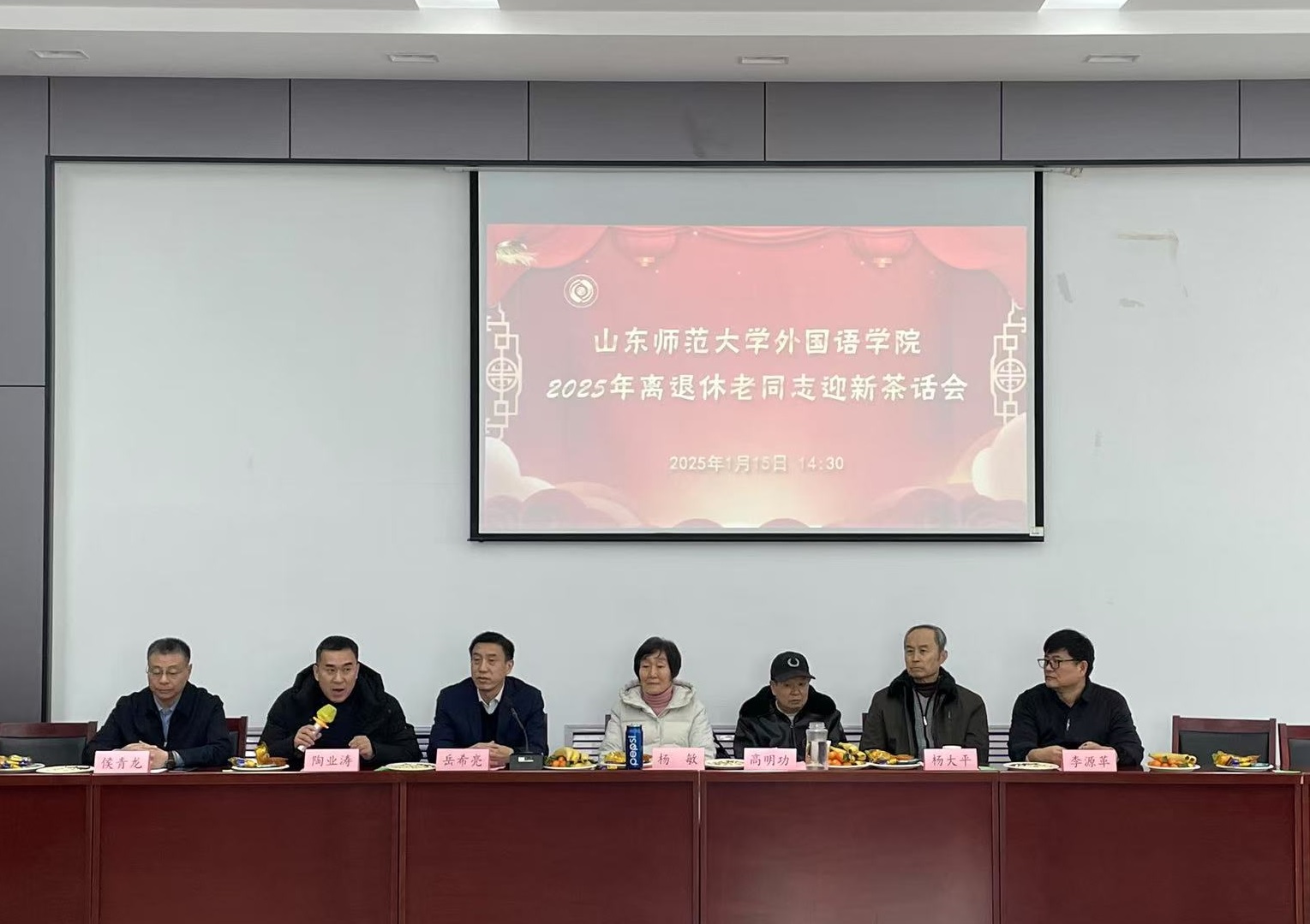 2025年1月15日,农历蛇年新春佳节即将到来之际,外国语leyu(中国)在千佛山校区老干部活动中心隆重举办了“2025年离退休老师迎新茶话会”。leyu(中国)党委书记岳希亮、副书记陶业涛、党政办主任李源革、leyu(中国)工会主席侯青龙代表leyu(中国)与30多位退休老教师欢聚一堂,共迎新春,畅叙情谊,共话发展。