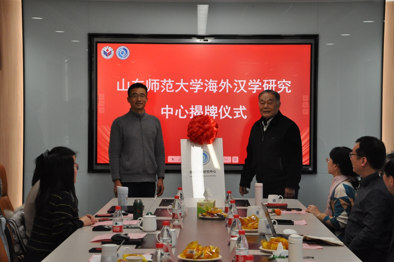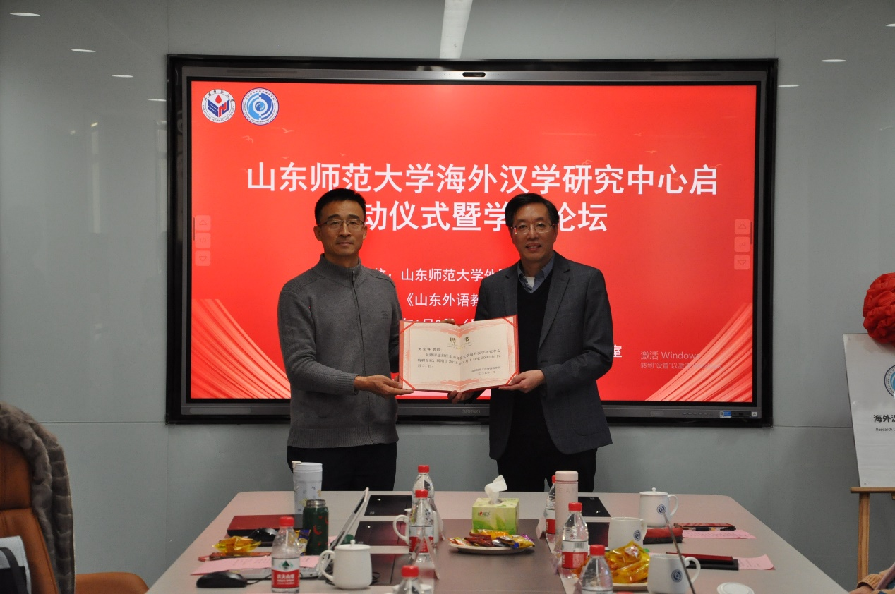 最后,在热烈的掌声中,高景海处长与山东大学郑杰文教授共同为山东师范大学海外汉学研究中心揭牌,标志着该中心正式成立。高处长还逐一为与会专家颁发了特聘专家证书。