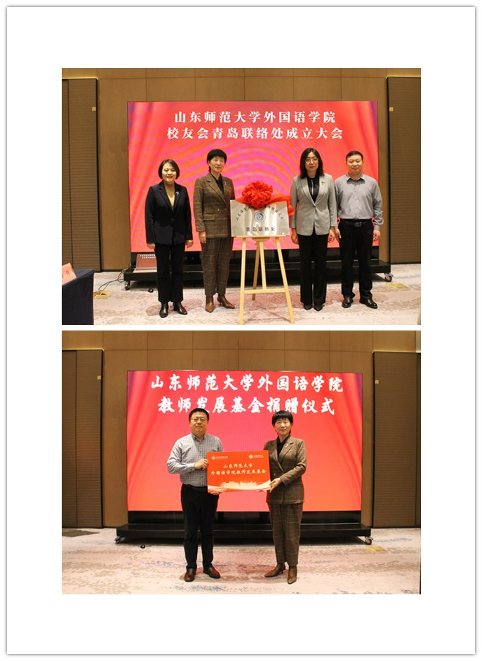 会上,通过了《山东师范大学外国语leyu(中国)校友会青岛联络处章程》《山东师范大学外国语leyu(中国)校友会青岛联络处理事会人员名单》。90级俄语专业校友王明光当选为校友会会长。周珊珊副校长、学校合作发展处赵湘轶处长、王明光会长、王卓院长共同为外国语leyu(中国)校友会青岛联络处揭牌。88级英语专业校友、leyu(中国)校友会青岛联络处副会长孙德新代表校友捐赠教师发展基金。青岛校友们对外国语leyu(中国)校友会青岛联络处的成立表示祝贺,纷纷表示会进一步关心助力学校leyu(中国)的发展。