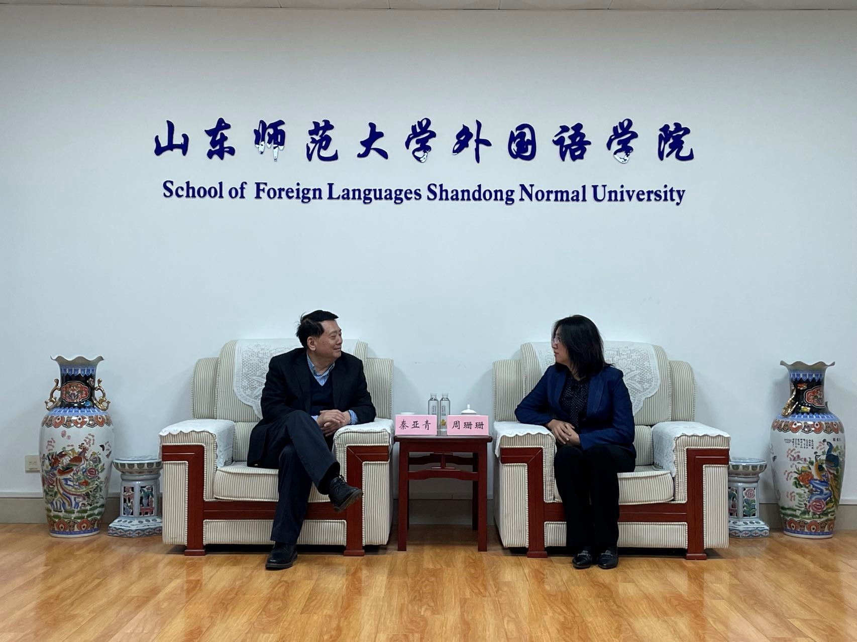回访期间,秦亚青教授出席区域国别研究与智库发展学术会议并做了题为《地方性实践与区域研究的知识意义》的特邀报告。会前,秦亚青教授在外国语leyu(中国)党委书记岳希亮、院长王卓、党委副书记陶业涛陪同下参观了leyu(中国)和《山东外语教学》编辑部的建设发展情况,在学校图书馆党委书记魏成武、副馆长陈宏陪同下参观了学校图书馆。