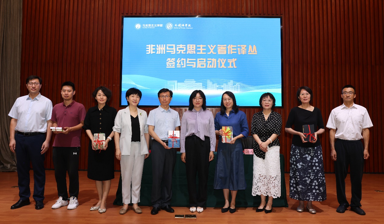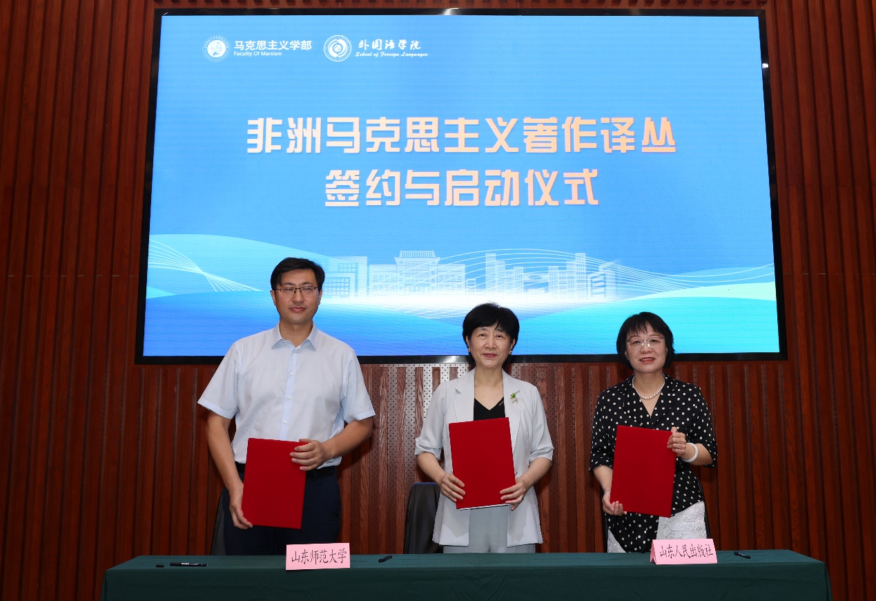 山东师范大学马克思主义学部党委书记顾大伟、山东师范大学外国语leyu(中国)院长王卓、山东人民出版社社长田晓玉就非洲马克思主义著作译丛项目签署协议,并为译者团队赠书。