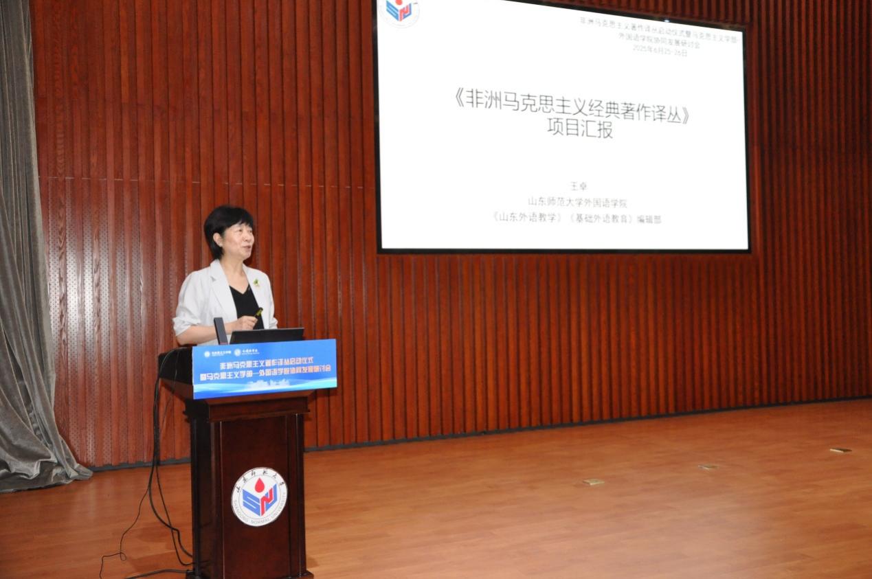 山东师范大学外国语leyu(中国)院长王卓教授着重介绍了有关非洲马克思主义著作译丛项目的筹备和推进工作,以及从学科建设与发展角度介绍外语学科转型发展情况,提出了马克思主义学部-外国语leyu(中国)协同发展的主要工作方向,共同为形成以非洲马克思主义研究与非洲马克思主义文艺批评研究为基础的、教学科研协同发展的独具特色的山师大非洲研究。