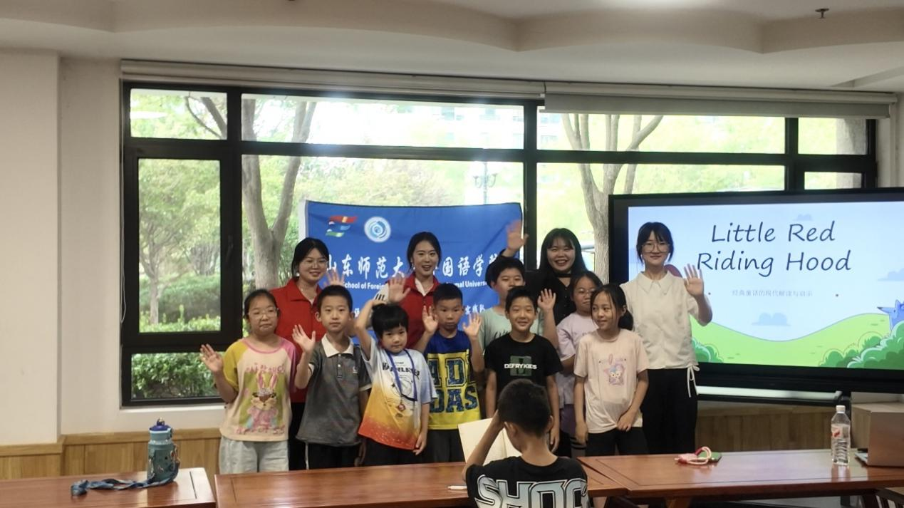 双语你画我猜”“英文单词盲盒”“Simon says” 等趣味活动,让孩子们在游戏中轻松掌握英文词汇;双语绘本共读与情境戏剧演绎,通过角色试镜、台词互动,让语言学习融入故事场景;英文童谣传唱结合环保非遗手工,孩子们在Little Star(《小星星》)和Lemon Tree(《柠檬树》)的旋律中熟悉单词,在创作非遗纸浆画时用英语介绍作品,实现了语言与艺术的融合;英文情景剧Little Red Riding Hood(《小红帽》)的排练与成果展示,让孩子们在合作中提升双语表达能力,不同年龄段的孩子也在互动中消除陌生、培养默契。
