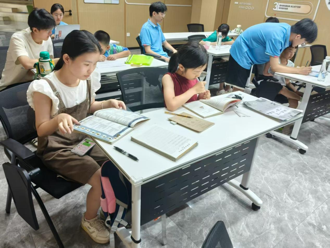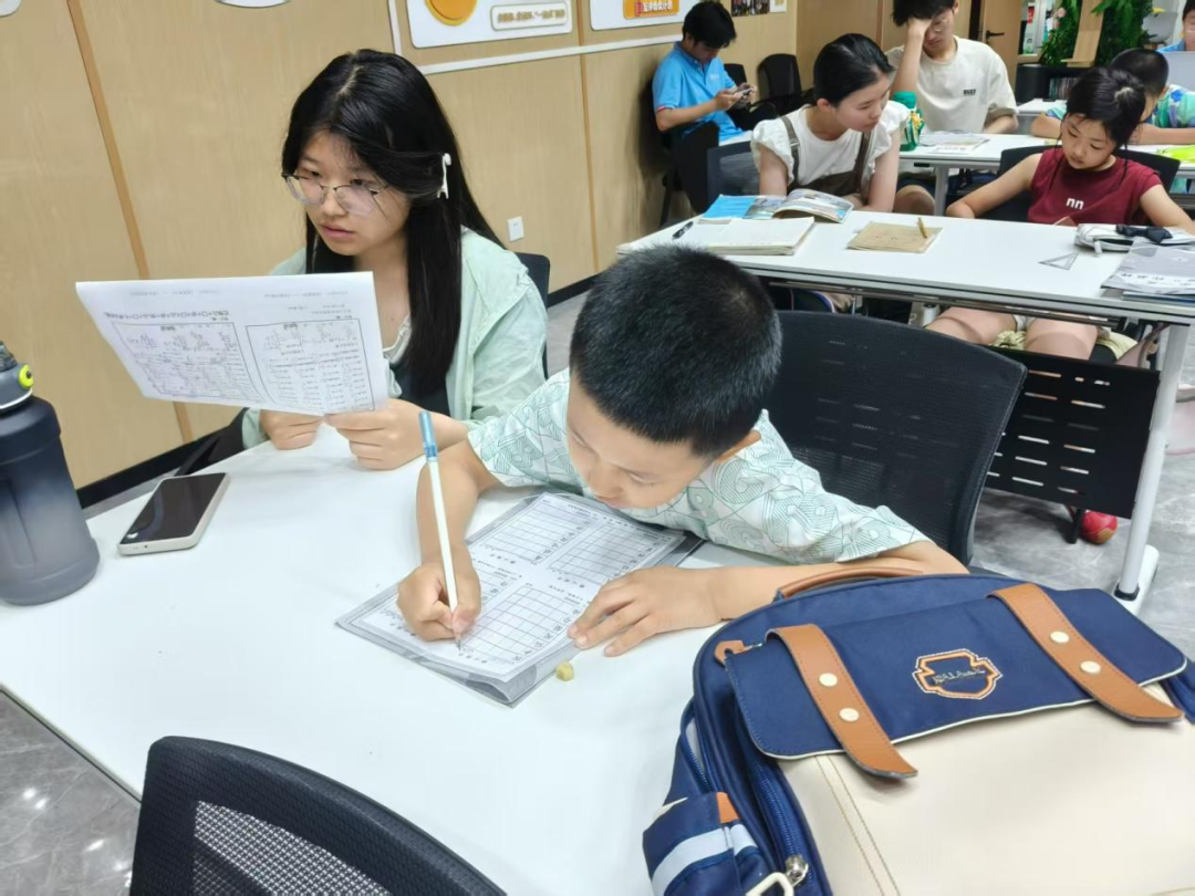 团队开设课业辅导,针对孩子们的暑期作业中的疑难点进行细致答疑,鼓励孩子们主动思考、大胆尝试,提高学习效率。指导英语课文时,队员们带着孩子们进行情景模拟,分角色朗读,模仿语调,在你一言我一语的对话互动中熟练英语表达;讲解数学公式时,将抽象的概念形象地转化成买文具、分水果的生活场景,帮助孩子们理解;辅导语文古诗背诵时,引导孩子们体会古诗的意境,讲解诗人创作的背景,由浅入深,激发孩子们对文学的兴趣。志愿者们每天记录孩子们的学习情况并与家长进行及时沟通交流,通过精准备课,提升课业辅导质量。