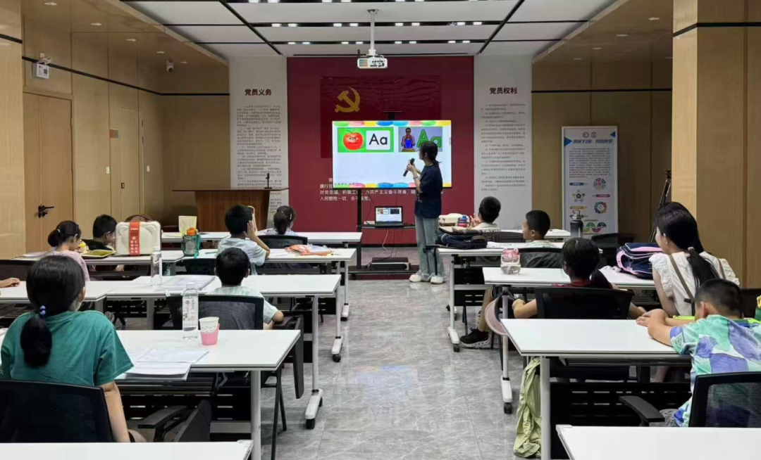 本次社会实践活动,志愿者立足英语专业特色,结合低龄儿童的学习特点,创新应用“自然拼读+趣味场景”的教学模式,将字母发音与日常事物、卡通形象关联,设计拼读卡游戏、单词发音挑战等互动环节,搭配自然拼读动画,借助沉浸式、互动化教学,让社区孩子在轻松愉悦的氛围中掌握字母及字母组合发音规律,筑牢英语单词识读基础。