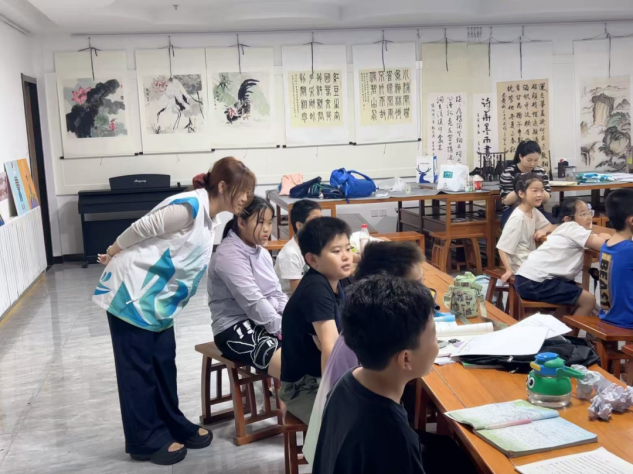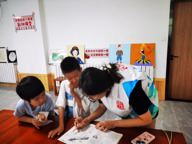 实践队成员们充分发挥外语专业优势,为孩子们提供英语作业辅导服务。针对暑期英语作业中的疑难问题,队员们点对点精准答疑,从解析题目到知识点讲解,循序渐进地帮助孩子们理清解题思路、掌握学习方法。队员们注重纠正英语单词发音、规范英语书写,并通过互动游戏和情景模拟,让孩子们在轻松的氛围中练习口语表达。