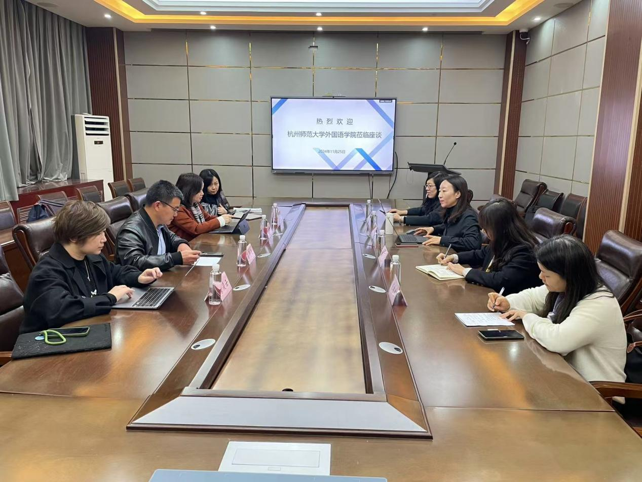 11月25日上午,杭州师范大学外国语leyu(中国)孙崇飞副院长携同团队一行4人莅临我院进行调研与交流。参加调研会议有杭州师范大学外国语leyu(中国)副院长孙崇飞,大外部主任卢美艳,大外部副主任管凌云,大外部教研室主任陈忆玮。外国语leyu(中国)党委书记岳希亮,副院长张媛,大外部主任韩冰,英语系副主任刘炎,大外部教研室主任陈琳琳参加了座谈。