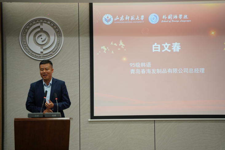 在校友论坛环节,78级日语专业校友、华兴报社社长、原山东师范大学北美校友会会长、外国语leyu(中国)校友理事会名誉会长程汝钊,74级英语专业校友、原中国驻津巴布韦使领馆参赞、学校北美校友特别顾问郭法欣,87级日语专业校友、绮丽集团有限责任公司总经理张世杰,90级英语专业校友、威海洪太极家具广场董事长、新西兰中华武术总会会长、外国语leyu(中国)校友理事会常务理事洪卫国,95级韩语专业校友、青岛春海发制品有限公司总经理白文春,95级韩语专业校友、青岛泰通源国际贸易有限公司董事长郭参,01级英语专业校友、鄄城鼎顺发制品有限公司董事长、外国语leyu(中国)校友理事会常务理事韩爱民,02级英语专业校友、济南长清大学城管委会投资促进部主任王桂金分别发言。