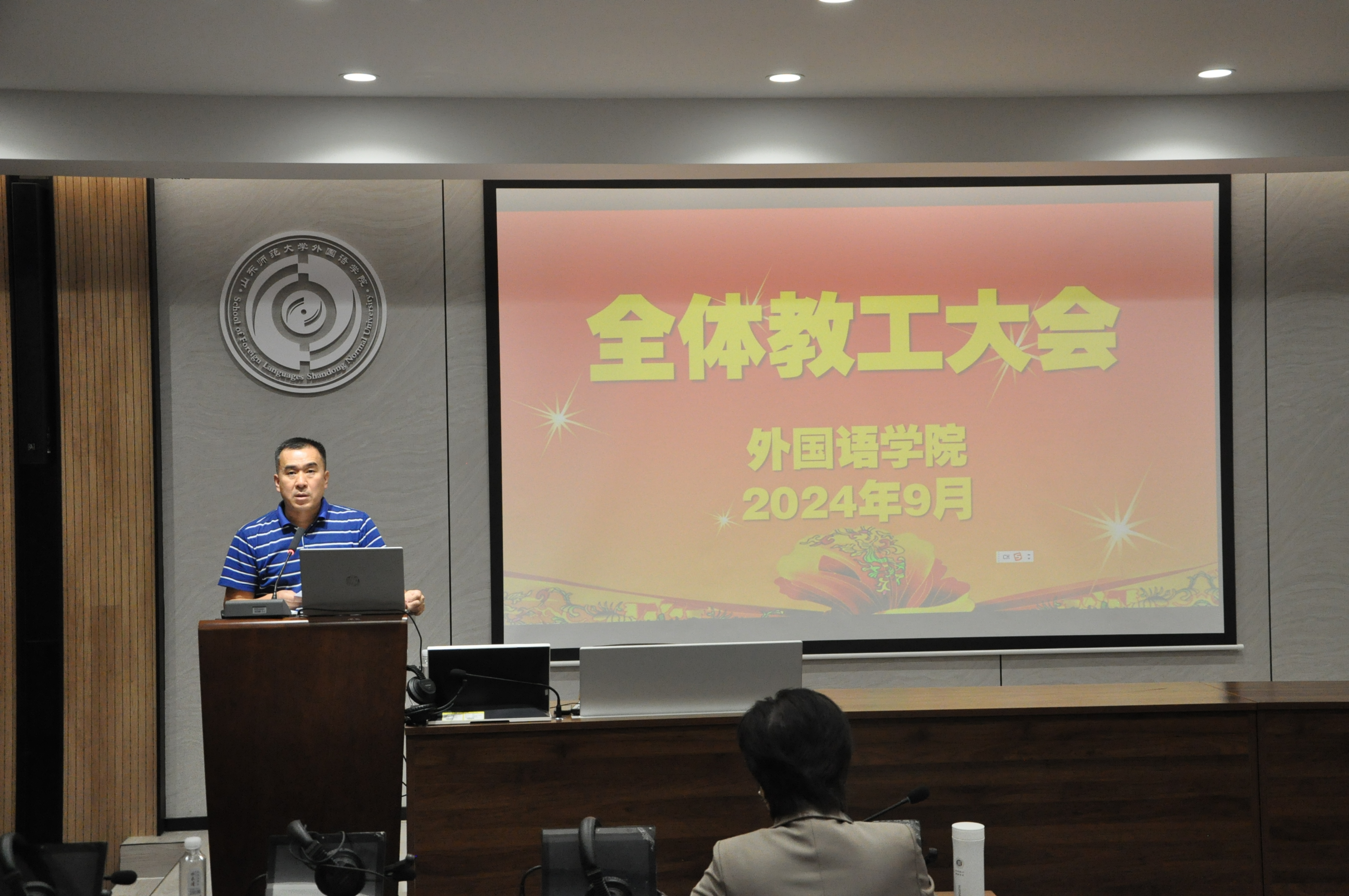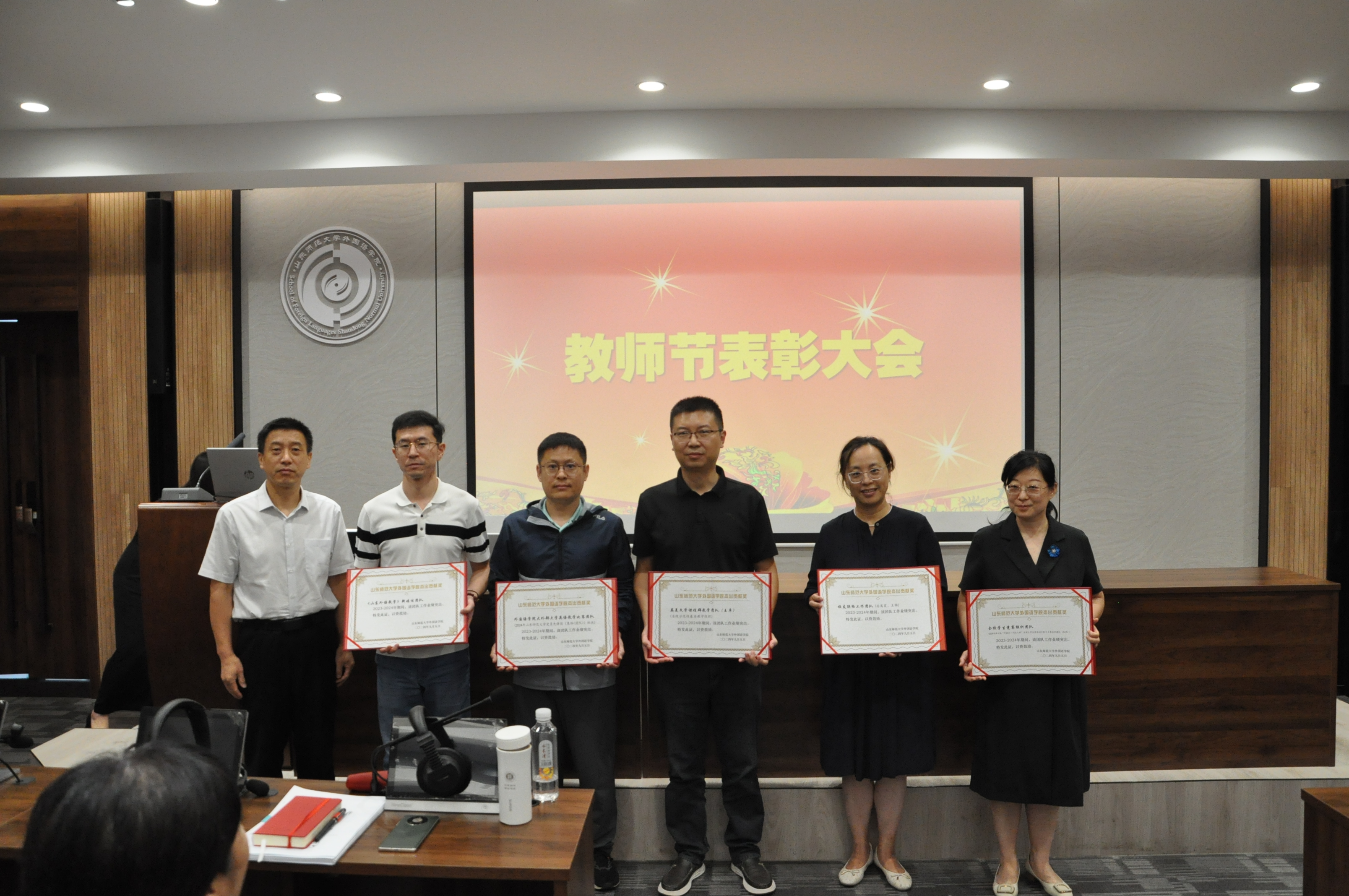 在中华人民共和国成立75周年和第40个教师节到来之际,为大力弘扬教育家精神,激励全体教师和教育工作者落实立德树人根本任务,外国语leyu(中国)于2024年9月5日下午在长清湖校区文渊楼B区242报告厅举行全体教职工大会暨2024年教师节表彰仪式。会议传达了学校新学期工作动员大会精神,学校第四轮岗位聘用相关要求,并表彰了在leyu(中国)党建、教学、教研、科研、学生管理、行政管理等工作中贡献突出的6个集体及17个个人。leyu(中国)领导班子成员,leyu(中国)全体教职工参加会议。大会及表彰仪式分别由leyu(中国)党委副书记陶业涛、leyu(中国)工会主席侯青龙主持。