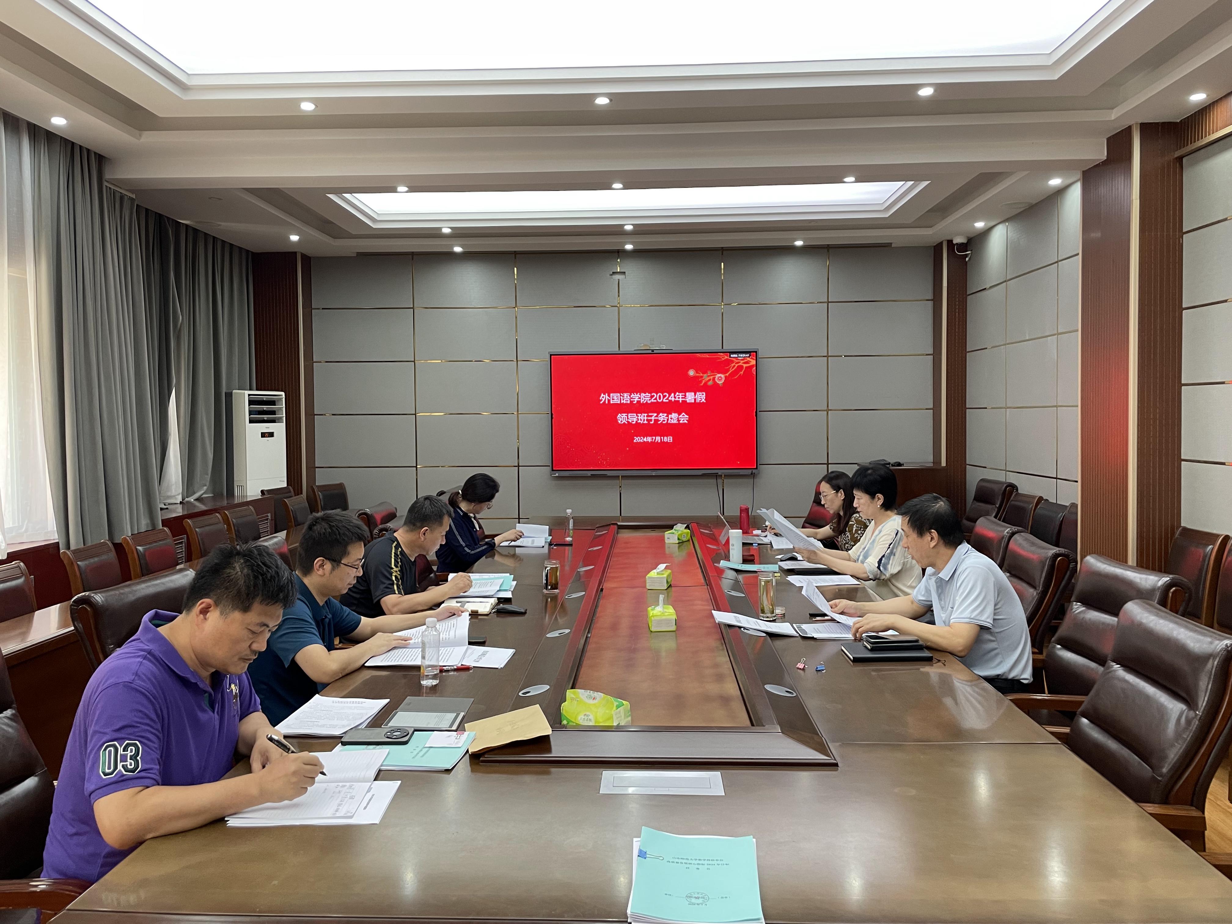 7月18日下午,leyu(中国)在长清湖校区文渊楼A313会议室召开了2024年暑期外国语leyu(中国)创新与高质量发展务虚会。外国语leyu(中国)党委书记岳希亮、院长王卓、副书记陶业涛,副院长张媛、翟乃海、院长助理郑琳琳、党政办公室主任李源革参会,会议由院长王卓主持。