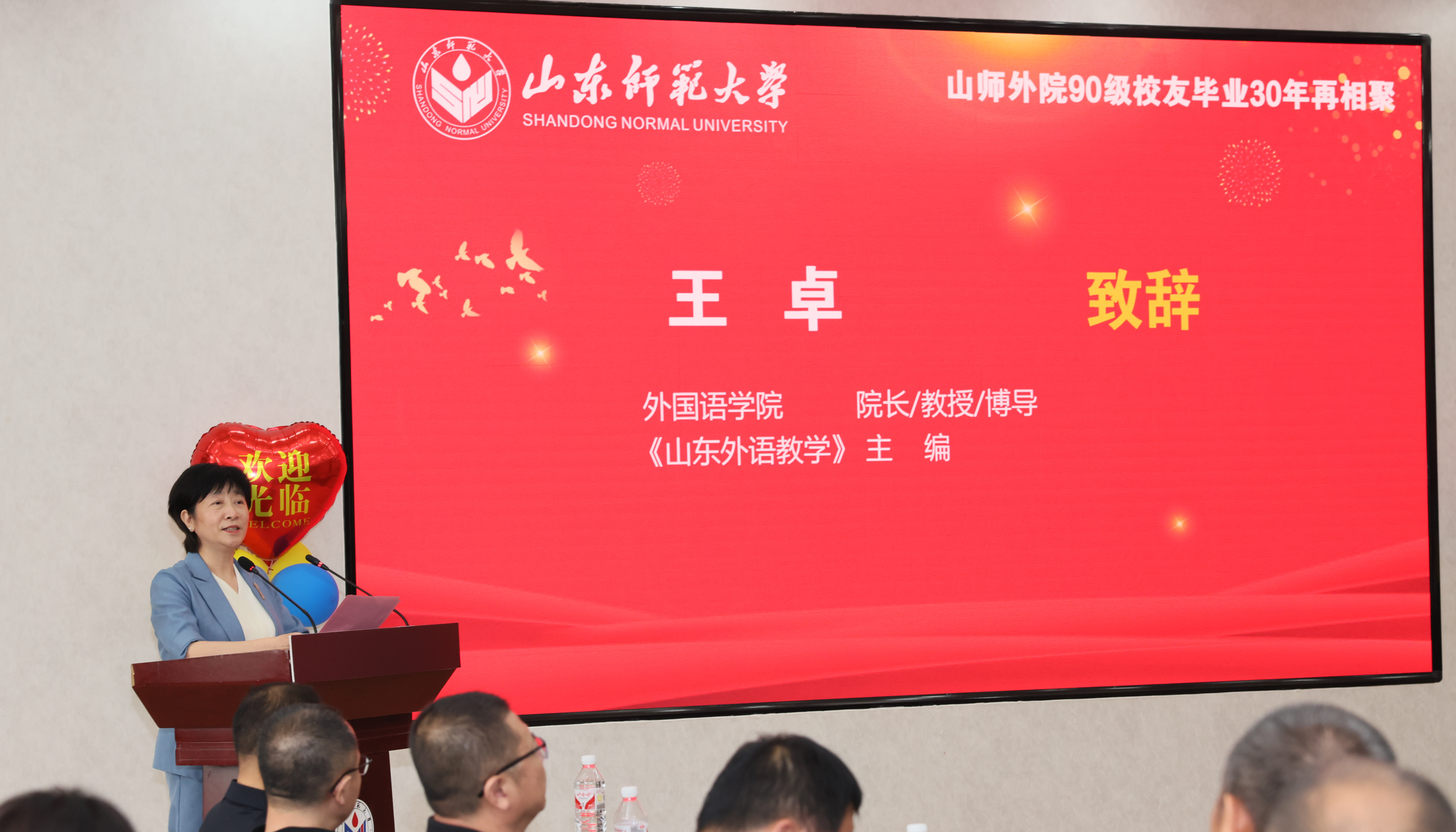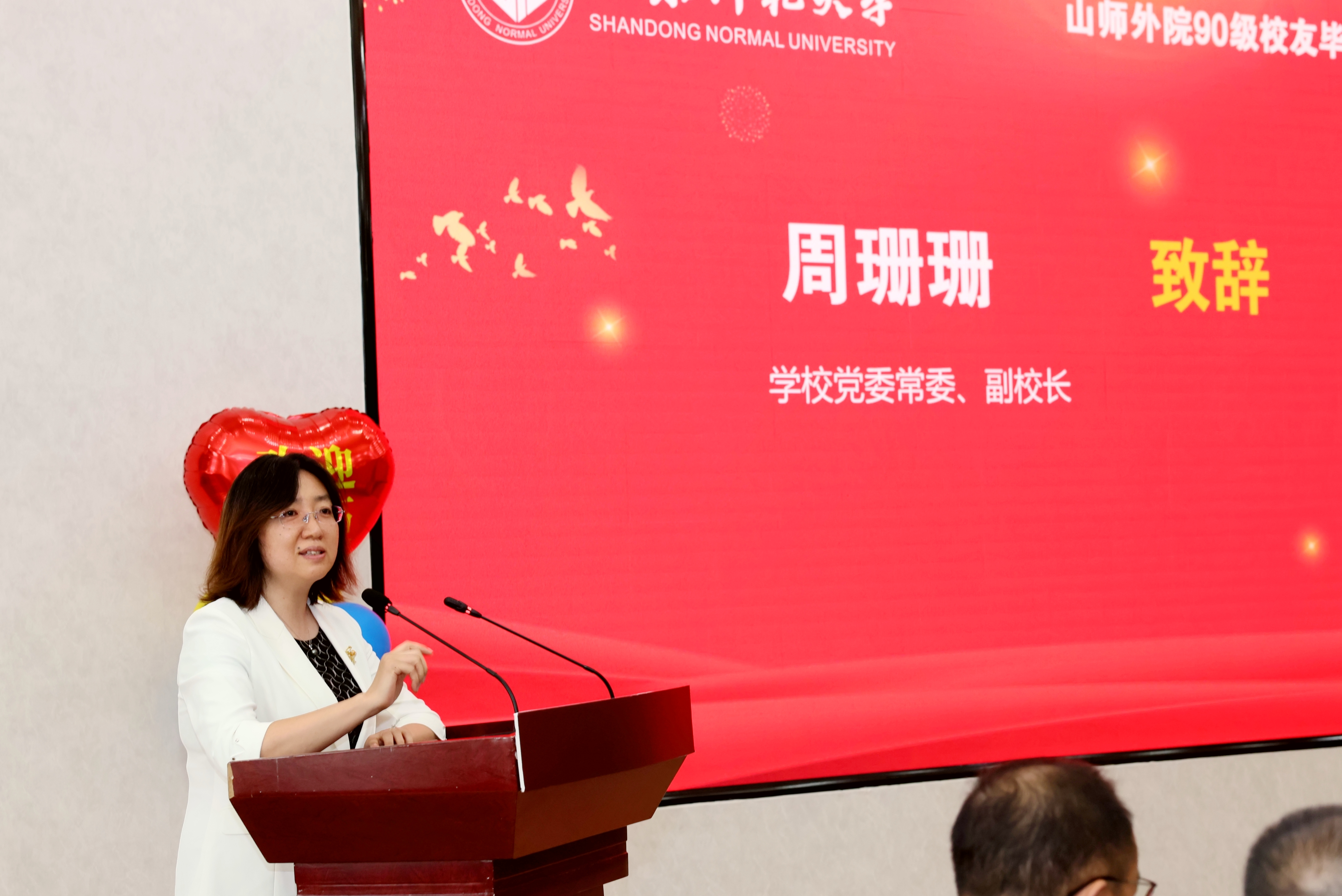 周珊珊代表学校向参会校友表示诚挚的欢迎,并发表了热情洋溢的讲话。她感慨道,古人云“三十年间更一世”,这期间国家和每个人都经历了沧桑巨变。周珊珊介绍了山东师范大学历经74年披荆斩棘、踔厉奋发的发展历程,重点分享了校友离校后三十年里学校的发展成就,和第九次党代会提出的加快建设国际知名的一流师范大学的新目标。周珊珊说,近年来学校以冲击“双一流”为目标,持续强化内涵建设,各项工作稳中有进,呈现出良好发展态势。先后获得国家自然科学二等奖;入选全国37所重点马院建设高校;入选山东省高水平大学“冲一流”建设高校,7个学科进入高水平学科建设行列;在全国第五轮学科评估中,1个学科进入A等次,4个学科进入B+等次,B类及以上学科数保持在13个;2023年,入选山东省一流学科建设“811”项目潜力学科A类1个、B类2个。在山东省本科高校高质量发展年度绩效考核中,连续四年获得优秀,连续三年排名第一等优异成绩。