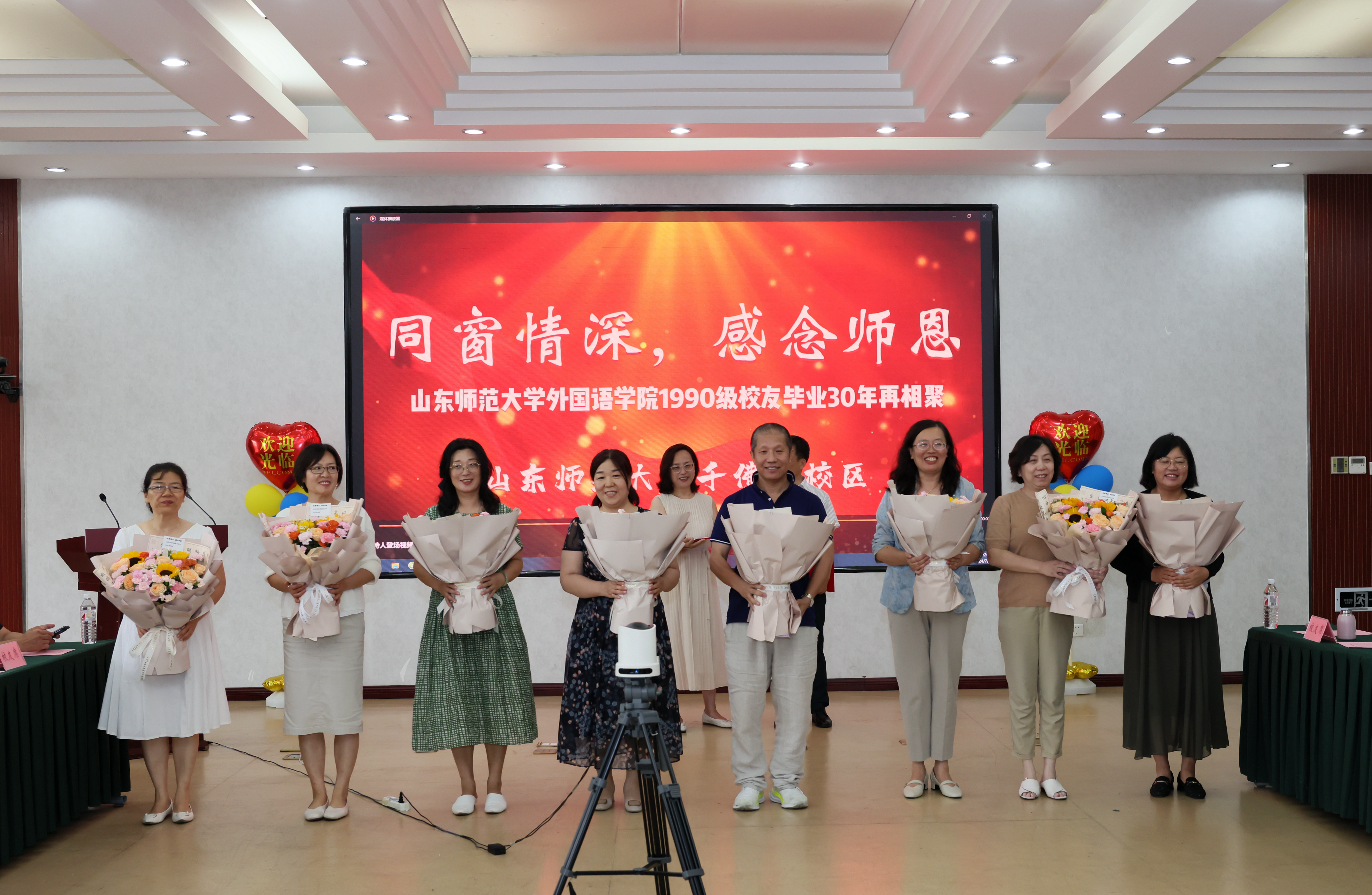 历尽山河万里,归来仍是少年。7月12日至13日,外国语leyu(中国)40余名1990级校友回访母校和母院,举办以“同窗情深,感念师恩”为主题的庆祝活动,近百名无法亲身前来的90级同学通过腾讯会议线上参与,一起重温青春岁月,再叙同窗情谊,感念母校培养,共商学校发展大计。校党委常委、副校长周珊珊,合作发展处处长赵湘轶,外国语leyu(中国)党委书记岳希亮、院长王卓、党委副书记陶业涛、党政办公室主任李源革,校友任课教师代表李自修、胡以男和惠敏教授以及部分师生参与本次活动,与校友进行了亲切交流。