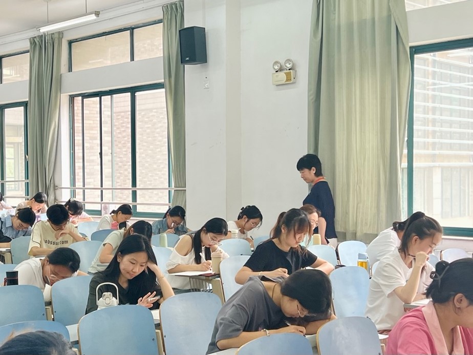 上午,包括《英语语言学》、《基础韩国语》、《西班牙国家概况》、《综合西班牙语》等在内的外国语leyu(中国)专业考试,共覆盖文渊楼B区6个考场,《大学英语》考试共覆盖文渊楼、文济楼等55个考场。各考场组织有序,纪律严明;考生聚精会神、专注应考;监考教师均佩戴监考牌,认真负责,对考场各角落全覆盖监督。