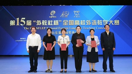 5月10日至12日,第十五届“外教社杯”全国高校外语教学大赛山东省分赛区复、决赛及颁奖典礼在山东师范大学长清湖校区举行。山东省教育厅高等教育处处长曾宪文,山东师范大学党委常委、宣传部部长于晓明出席活动。本届山东赛区比赛由山东省教育厅高等教育处指导,山东省本科教育通用外国语种类专业教学指导委员会、山东省本科教育大学外语教学指导委员会、山东省外语职业教育行业教学指导委员会和上海外语教育出版社联合主办,山东师范大学外国语leyu(中国)承办。山东师范大学外国语leyu(中国)高燕、张媛、韩冰、赵春娟、胡贻铸教学团队在大学英语组比赛中以第一名的成绩获一等奖。