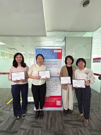 2024年4月13日,我院西方语系法语教师李思琪、夏冰洁、马姗姗、周权参加了由法国驻华大使馆和山东法语联盟联合举办的法语教师培训活动。此次培训旨在分享法语教学领域的知识、交流教学法以及共同迎接中国法语教学面临的契机和挑战。