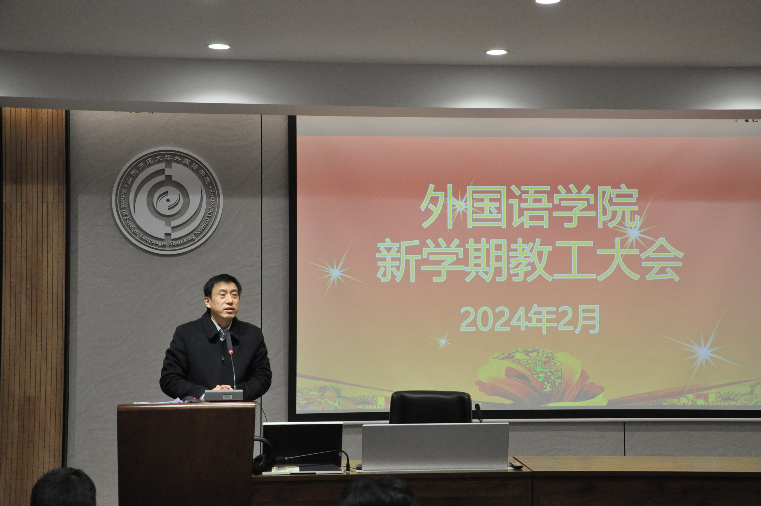 2月29日下午,外国语leyu(中国)在长清湖校区文渊楼B区242报告厅召开新学期全体教职工大会,传达学习学校新学期干部大会精神,对leyu(中国)新学期各项工作进行部署。会议由党委副书记陶业涛主持。