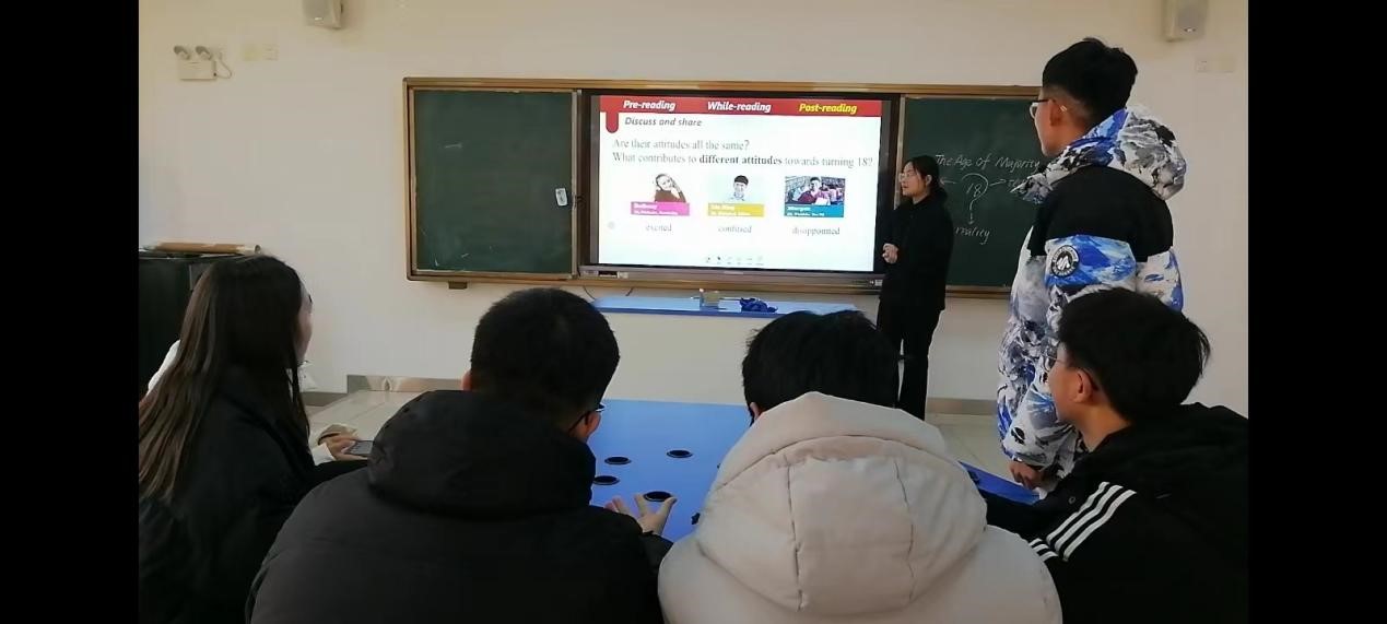 在初赛阶段,王锦老师和孙炬老师向晁丽文从最基本的教案设计,课件制作开始提供个性化的教学辅导和授课实践分析,讨论选取授课展示内容,师生齐心协力,通过四天的反复试讲、磨课,使课程设计不断精细和优化,成功晋级决赛。