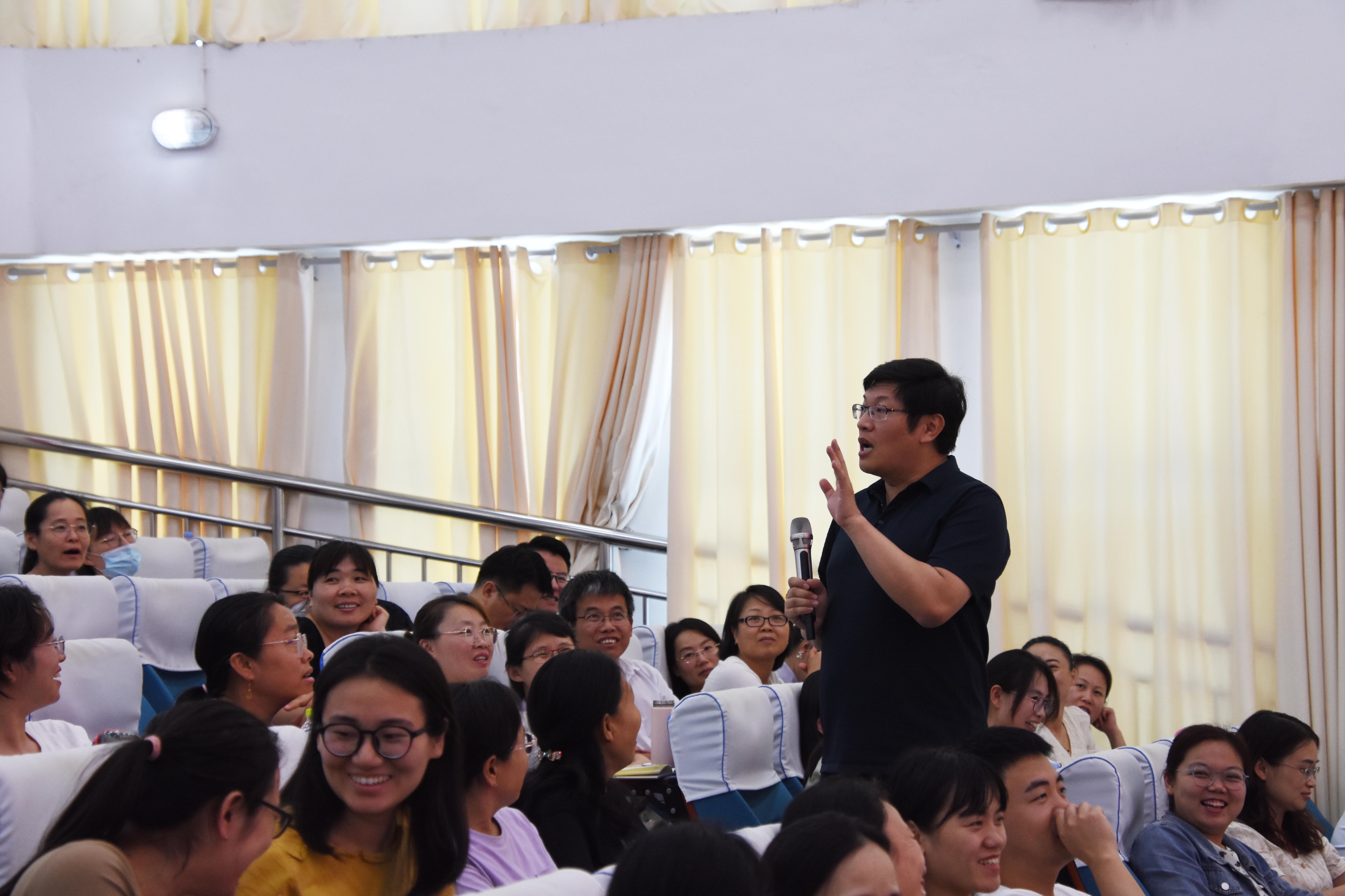 出席培训会议的有山东师范大学外国语leyu(中国)王卓院长、leyu(中国)党委委员李源革主任、英美文学文化教研室王秀香主任、英语系赵笑飞和刘奕男老师;滨州市教育科学研究院教研员宋立泽和薛文杰老师;阳信县委教育工委常务副书记、县教体局党组书记、局长刘兆忠,阳信县教育科学研究中心主任刘明、教育科学研究中心常务副主任范宜鹏、阳信县培优中心书记、教育科研中心副主任付治华以及阳信县英语教育科学研究中心英语教研员孔秋霞老师等。同时,来自阳信县各个学段、不同乡镇的300多名英语教师参加了此次培训活动。阳信县教育科学研究中心主任刘明主持了会议。