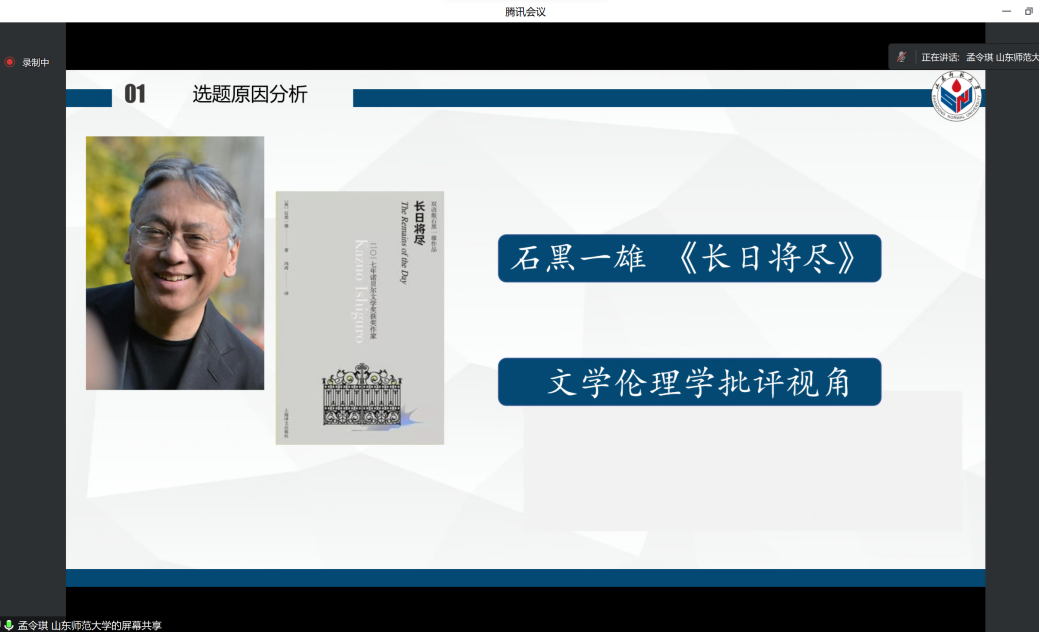 孟令琪在第十六组族裔文学的伦理视角(一)中发言