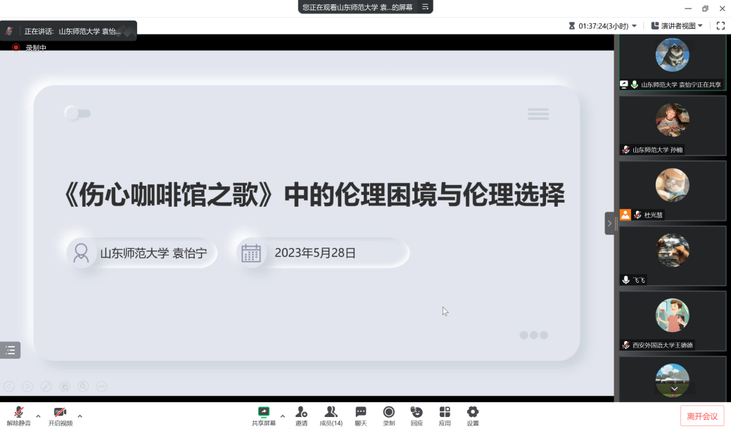 王怀瑾在第二十组文学伦理学批评基础理论与文本分析(六)中发言