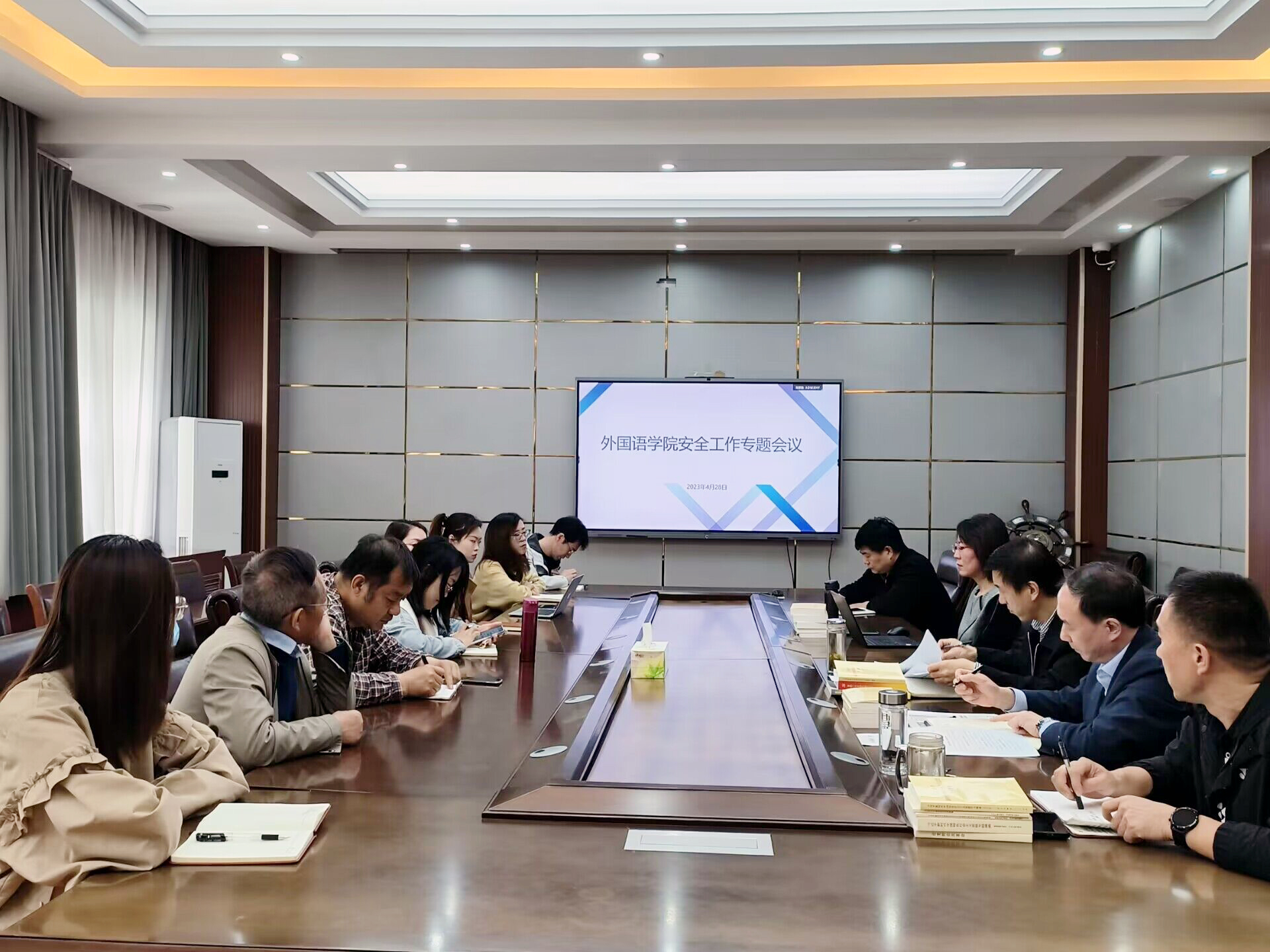 4月28日上午,外国语leyu(中国)在长清湖校区文渊楼A313会议室召开安全工作专题会议。leyu(中国)党委书记岳希亮,党委副书记张京国,副院长陶业涛、王金娥,党政办主任李源革、学工办主任司世牧,及leyu(中国)科级干部、科室负责人、全体辅导员参加会议。会议由副院长陶业涛主持。