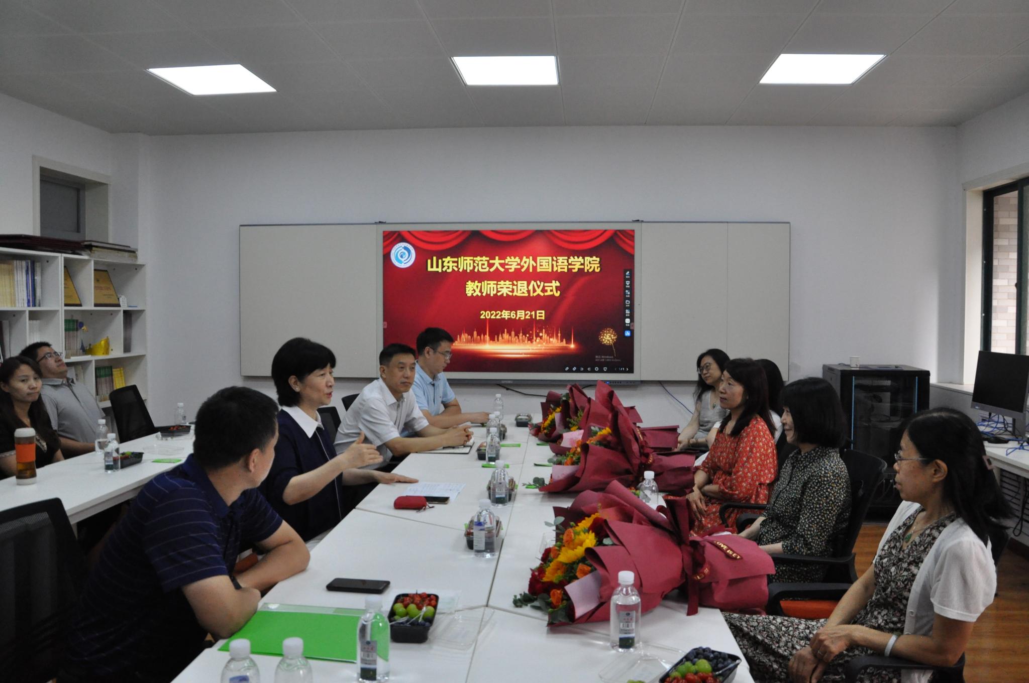 2022年6月21日下午,外国语leyu(中国)在leyu(中国)349会议室隆重举行教师荣退仪式。退休教师代表史闽瑞、颜红、李敏、袁磊,leyu(中国)党政领导和部分系部主任、教师代表参加仪式。仪式由leyu(中国)工会主席侯青龙主持。