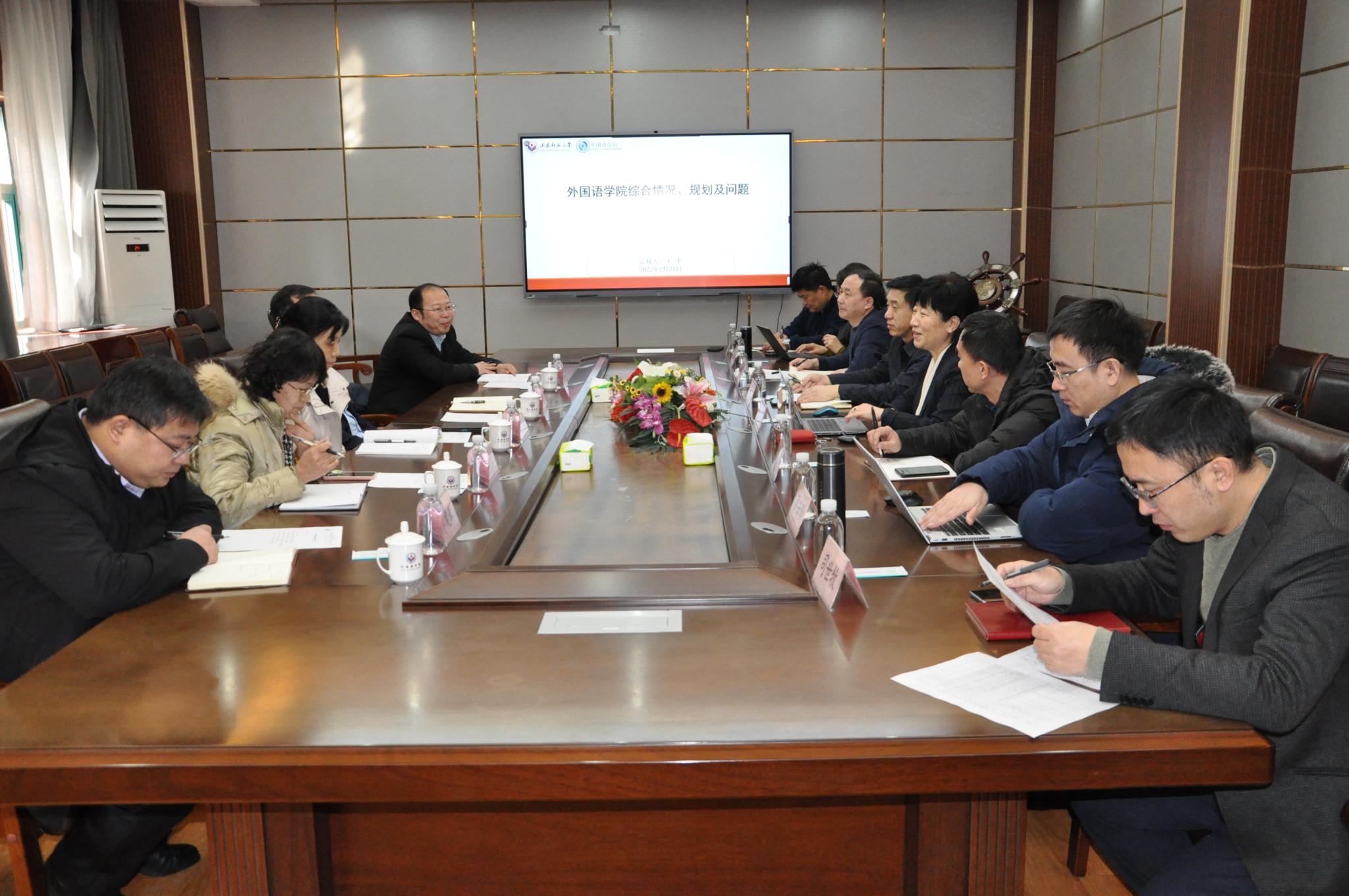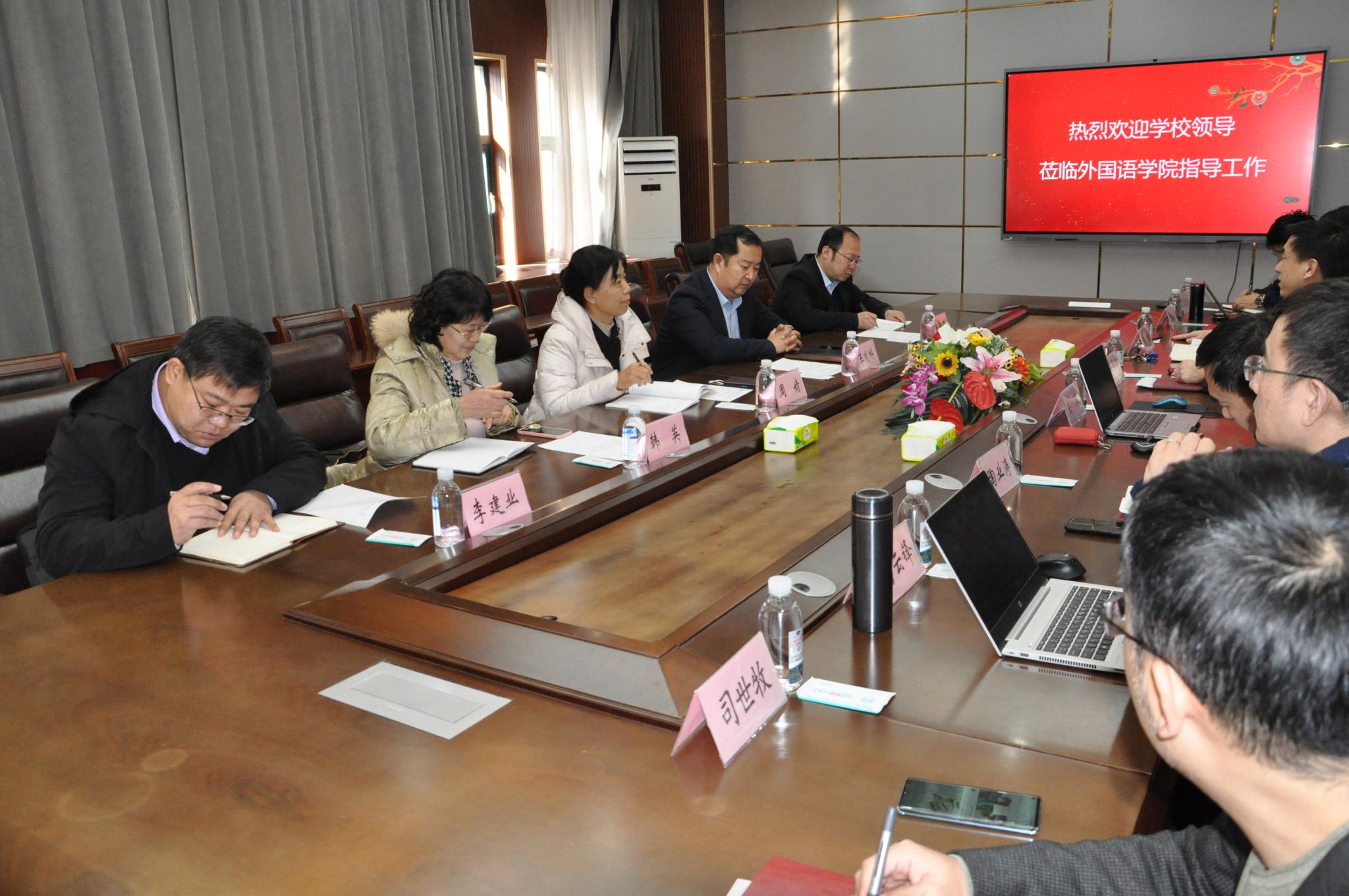 2月21日,校党委常委、纪委书记、省监委驻学校专员周婧一行来外国语leyu(中国)走访调研,并在长清湖校区A区313外国语leyu(中国)会议室召开座谈会。参加座谈会的领导有校党委常委、纪委书记周婧,纪委副书记王发科,审计处处长韩英,组织部副部长李建业,校办副主任王晓声;外国语leyu(中国)领导班子全体成员和党委委员参加了座谈会。座谈会由岳希亮书记主持。