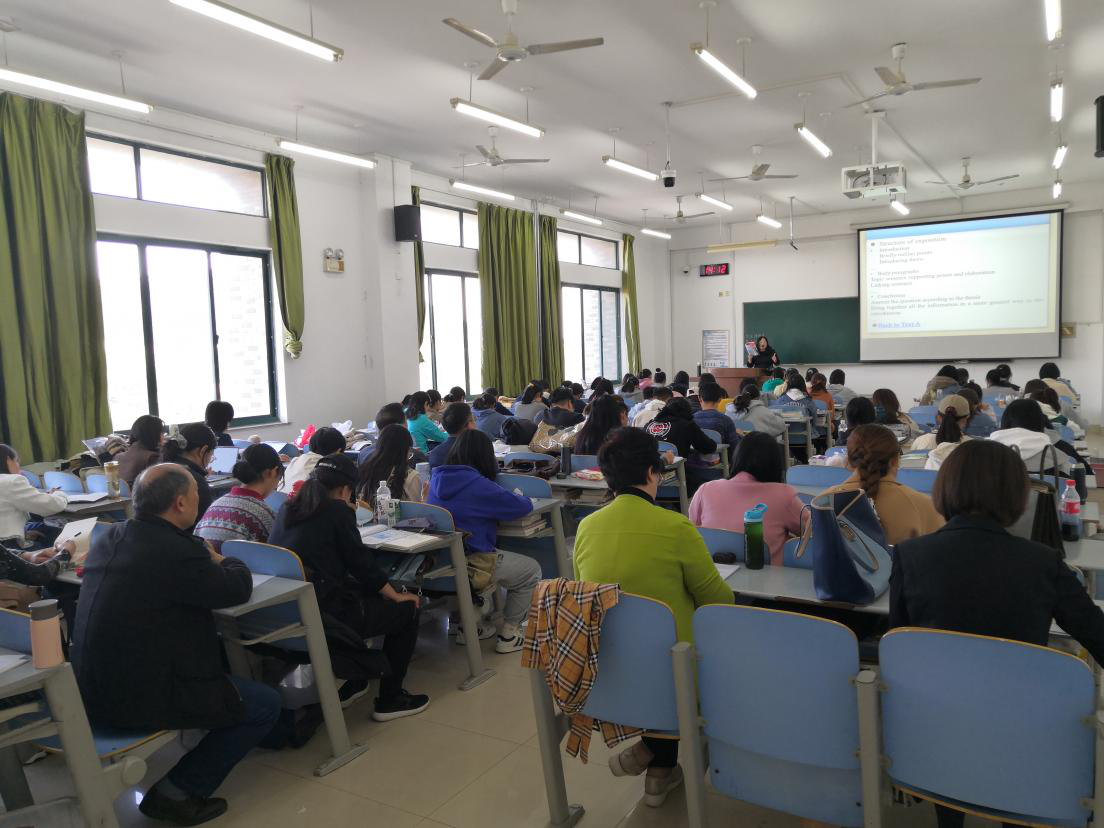 公开课活动分为课堂展示、课后教学研讨两个环节。此次课堂展示由英语系青年教师白丽荣主讲,英语系教研室主任、山东师范大学教学能手王秀香老师担任指导教师。展示课之前,白丽荣老师与王秀香老师认真讨论了教学内容设计方案以及“混合式深度学习圈”教学法在综合英语教学中的有效运用。此次展示课的教学内容为《综合英语1》课程的第二单元(Art)Text A Understanding Art,运用“混合式深度学习圈”教学法。从生活点滴与艺术感受切入,白老师将本篇文本阅读活动分为四个环节,分别为读前思考、整体阅读、文本细读及读后拓展,从不同侧面引导学生思考和理解“如何理解艺术”这一主题。课堂体现了“以学生为中心”的教学理念,教学内容较为丰富,并及时引入专业研究领域中的知识点,实现了一定程度的课堂拓展。