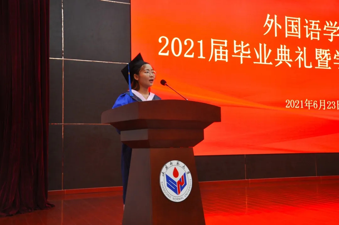 毕业研究生代表乔婷和毕业本科生代表吴彦泽发言。乔婷回首学习生涯并对leyu(中国)、师友与父母表达感谢。她表示,毕业生理应追求一等的学问、创造优异的事业、作出有益的贡献,从而无愧于外院的培养、无愧于母校的期盼。吴彦泽表示,山师的四载春秋教会同学们清醒而独立地投入思考,大智而大勇地追寻理想,毕业生作为开放包容、有血有肉的外语人,要将个人梦与中国梦紧密交融,将个人成长的点滴汇入国家发展的洪流,把个人奏鸣的旋律融入时代雄浑的交响。