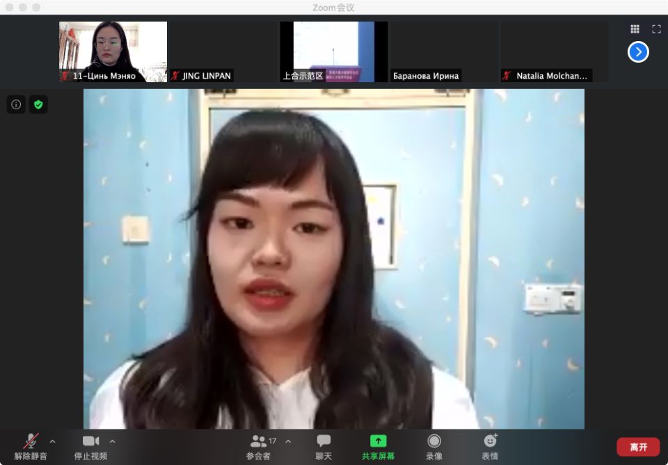 本次比赛以上合组织为主题,以演讲比赛形式开展。本次决赛创新性采取俄罗斯专家线上评审的方式,提升了比赛的档次和水平。高校组决赛评委为圣彼得堡彼得大帝皇家理工大学国际教育课程研究生leyu(中国)副教授、语言学副博士Баранова Ирина Ивановна以及普斯科夫国立大学对外俄语教研组副教授Наталья Молчанова Сергеевна。我院选送的三名优秀选手,经过外教Валентина Ильинична老师、杨洁老师、孙嵩霞老师指导,三位同学充分准备,经过决赛的角逐,最终为我院取得优异成绩,其中2019级研究生秦萌遥荣获一等奖,2018级研究生周亚男、2017级本科生曹馨媛荣获三等奖。三位同学均在比赛中表现出优异的风采,展示了我院俄语学子的整体面貌。参加此次大赛决赛的高校组获奖选手分别颁发一、二、三等奖,同时颁发由上合示范区管委会授予各位选手的“上合示范区青年使者”奖项。