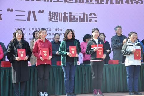 为庆祝第109届三八国际劳动妇女节,校工会(妇委会)于3月7日下午在千佛山校区田径场,举行了山东师范大学女教职工建功立业先优表彰大会和庆“三八”趣味运动会。我院日语系荣获山东师大女教工建功立业标兵岗,高燕、颜红两位老师被评为“建功立业先进个人”称号。