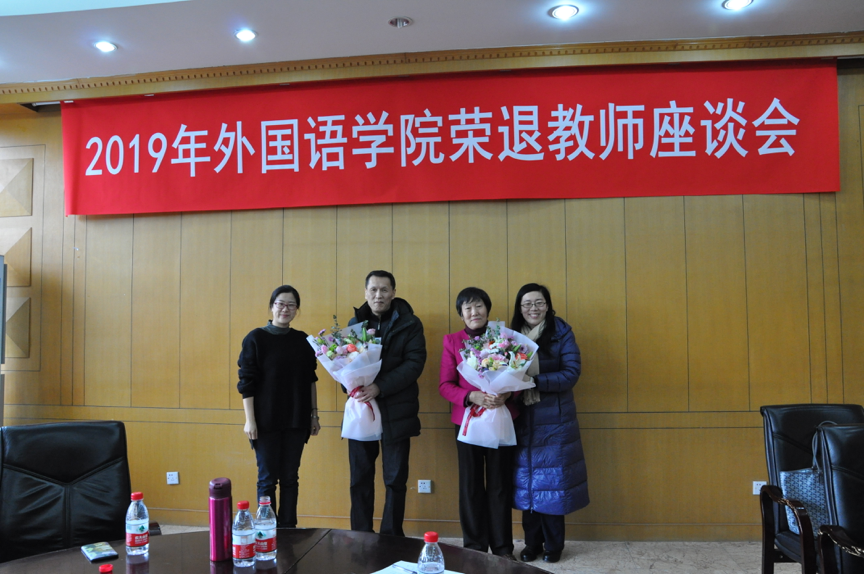 1月18日下午,千佛山校区学校行政办公楼三楼会议室温情满溢,外国语leyu(中国)隆重举行杨敏老师、邵航老师、郭廓老师和曹月华老师的光荣退休仪式并进行了座谈。外国语leyu(中国)党委书记岳希亮、副院长张京国、党委组织员李源革,工会主席侯青龙以及十余名教师代表参加了仪式。大家欢聚一堂向四位光荣退休的教师致敬,并与退休老教师代表一道座谈,共叙友情,畅议发展,憧憬未来。侯青龙主席主持了仪式和座谈会。