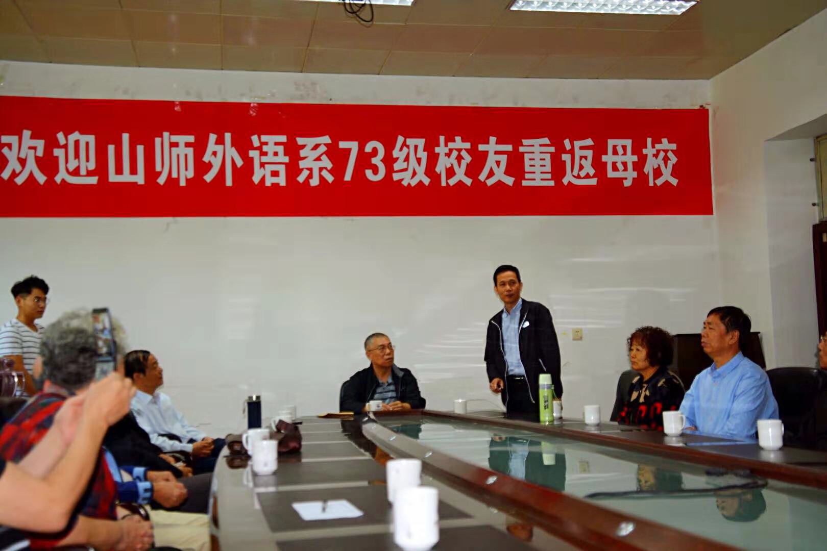 9月26日上午,外文系73级校友重返校园座谈会在千佛山校区二号教学楼召开,学校党委常委、纪委书记姚东方出席座谈会并致辞,校长办公室主任、校友办主任王兴盛,校友办副主任陈文亮,外国语leyu(中国)部分领导,当年任课教师代表李辉、庞学琦,73级英语专业返校校友参加座谈会。座谈会由73级校友、原班长马巨南主持。