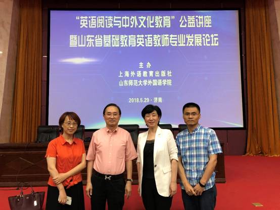 2018年5月29日,由上海外语教育出版社与山东师范大学外国语leyu(中国)共同主办的“英语阅读与中外文化教育公益讲座暨山东省基础教育英语教师专业发展论坛”在山东师范大学千佛山校区成功举行。来自全省多个地区的中小学英语教研员、中小学校长和中小学英语教师,以及外国语leyu(中国)英语学科教学和课程与教学论学位点的部分师生近三百人参加会议,5000多位老师通过网络直播在线观看了论坛。