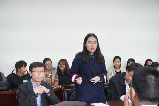 在报告的最后,仲教授回答了与会的老师和同学提出的三个问题,分别是口译与笔译之间的关系、是否需要出国提高语言能力以及口译教师如何进行同传教学。他认为,笔译是一种基础,口译专业学生首先应当具备良好的笔译能力,这对理解和再现源语言至关重要;目前网络上的教学和口译练习资源非常多,即便不出国,坚持训练也能提升语言能力,如果有机会出国学习也要把握机会;口译教师要进行同传教学,就应当多做实践,因为授人以渔,首先自己要学会打渔,要从实践中总结经验。