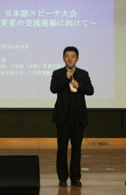 大赛正式开始后,学生主持人王雅馨和肖灵修首先用流利的日语介绍比赛流程及评分标准。此次比赛设有两个环节,包括5分钟的命题演讲和3分钟的即席演讲,分别在上午和下午进行。命题演讲环节选手们分别以“网络购物”、“情感纽带”为题目,根据抽签顺序依次进行演讲。来自24所高校的选手们落落大方、用流利而标准的日语进行了极富感染力的演讲,他们有的娓娓道来、有的慷慨激昂,风采各异,赢得了观众们的热烈掌声。即席演讲的题目为下午比赛半小时前由评委商量决定,本次大赛即席演讲题目为:“我的成长与变化的中日关系”,这是一个思辨性很强的题目,难度很高。虽然准备时间仅有10分钟,但选手们从容应对,侃侃而谈,展现出平时丰富的知识积累与较高的临场应变能力。接下来,在评委会召开评议期间,来自和歌山县外外事办公室的川口喜宽先生从地理优势、美食特产、温泉、名胜古迹、旅游资源等方面介绍了和歌山风光;我校日语系大一大二学生为在场的嘉宾及观众带来了精彩的文艺演出,有歌曲合唱、古典舞、配乐诗朗诵、书法展示等表演,展现出我校日语系学生的艺术修养与青春活力,精彩的节目演出得到在场观众的阵阵掌声。