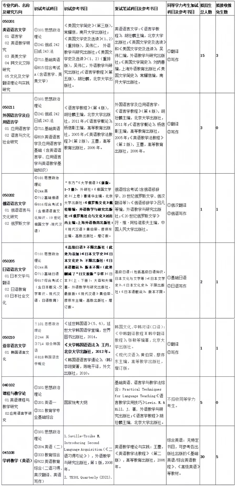 01.外国语言文学一级硕士点